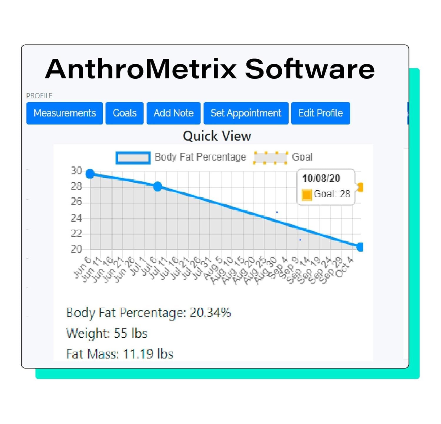 ANTHROMETRIX SOFTWARE Includes a 6-month subscription to AnthroMetrix body fat software, a web-based app accessed from any smartphone or web browser. Registration details are in the instruction manual.