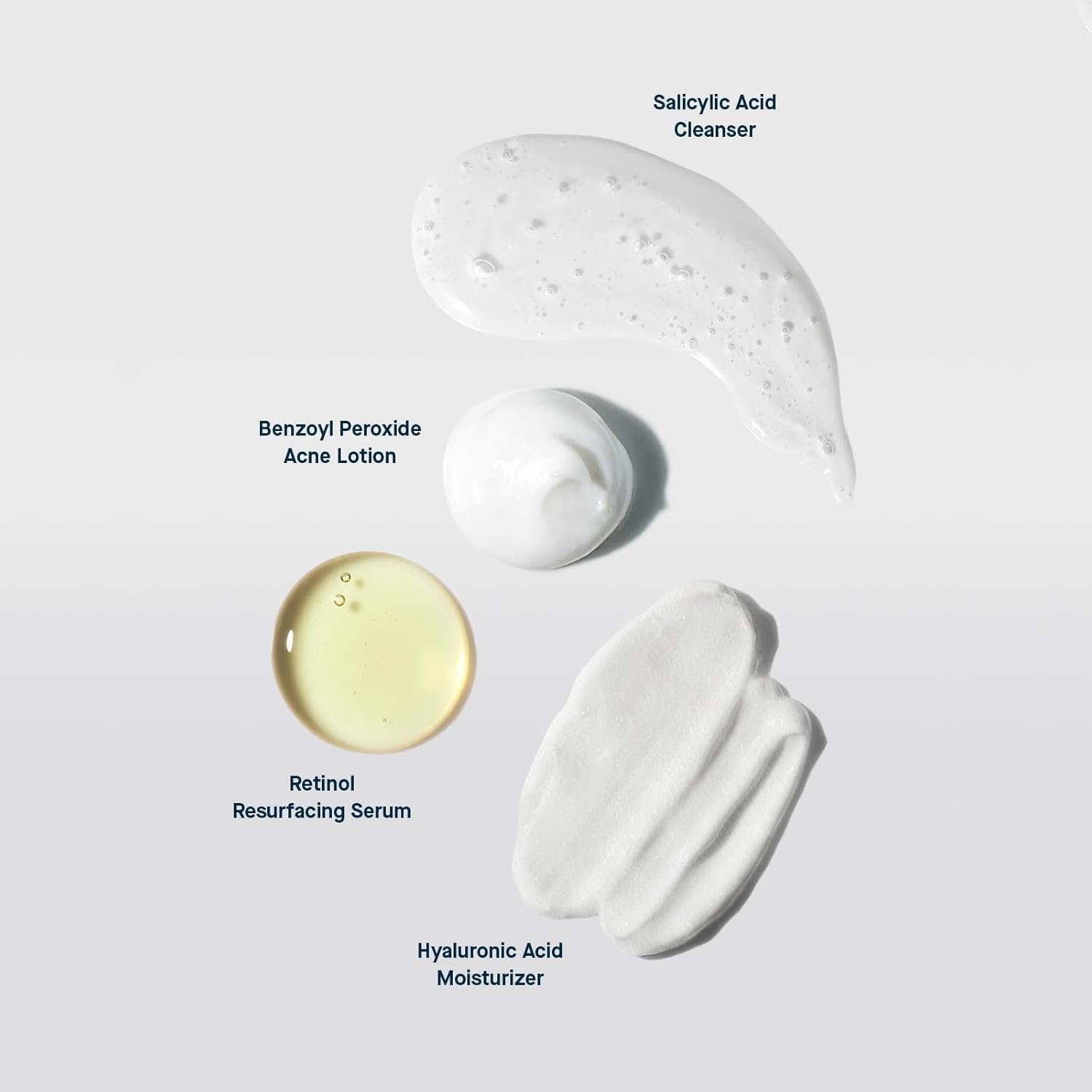 PRODUCTS THAT ARE BETTER TOGETHER: Salicylic Acid Cleanser gently cleanses and exfoliates keeping pores from clogging with oil and debris. Benzoyl Peroxide Acne Lotion treats and prevents inflammatory acne like pimples and pustules. Retinol Resurfacing Serum speeds up cell renewal to keep pores clear and minimize the look of dark spots, fine lines and wrinkles. Hyaluronic Acid Moisturizer helps to mitigate any irritation that may arise from using acne treatments.