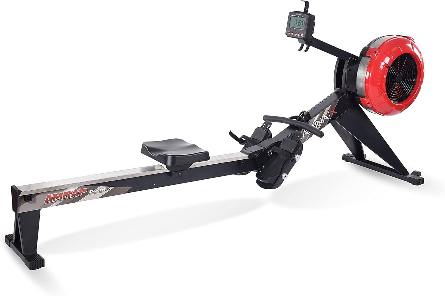 Row for results The stamina x amrap (as many reps as possible) rower is built to withstand intense workouts day after day. Fuel your intensity The amrap rower was designed for results. Dynamic air resistance adapts to your workout speed. Pull harder for more resistance; ease off for less. Further customize your workout by using the adjustable damper. Track your gains over time with the workout monitor and chest strap heart rate transmitter. The monitor allows varied workouts each session, increasing your motivation and interest. You can pick interval intensity programs or set target values for distance, time or calories. During your session, The monitor displays distance and interval, time, total strokes/strokes per minute, meters per stroke, watts, calories and heart rate (by using the heart rate transmitter). a game mode adds even more fun and variability. Also, a cell phone bracket allows use of your own device during your workout. Built to last The molded seat promotes proper rowing form. Adjustable footplates with straps keep you secure. The textured grip on the rowing handle keeps your grip secure, even when sweating. Solid-steel construction and a durable rowing chain make the amrap rower a long-lasting mainstay in your home gym. End caps stabilize the rower and protect your floor. Built-in wheels make for easy storage after you’ve finished your workout, and quick separation of the main frame and rail minimizes required Storage space. For a high-quality, built-to-last rowing machine, look no further than the stamina x amrap rowing machine.