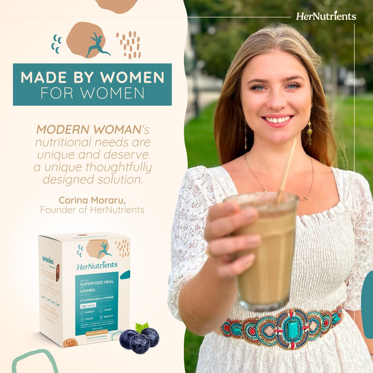 🌱 Ultimate Female Nutrition: HerNutrients is more than a meal replacement – it’s a declaration of strength for the ambitious woman. Each sip is packed with 57 superfoods, 20g of plant-based protein, and essential nutrients, fulfilling your health needs in a single, convenient shake.