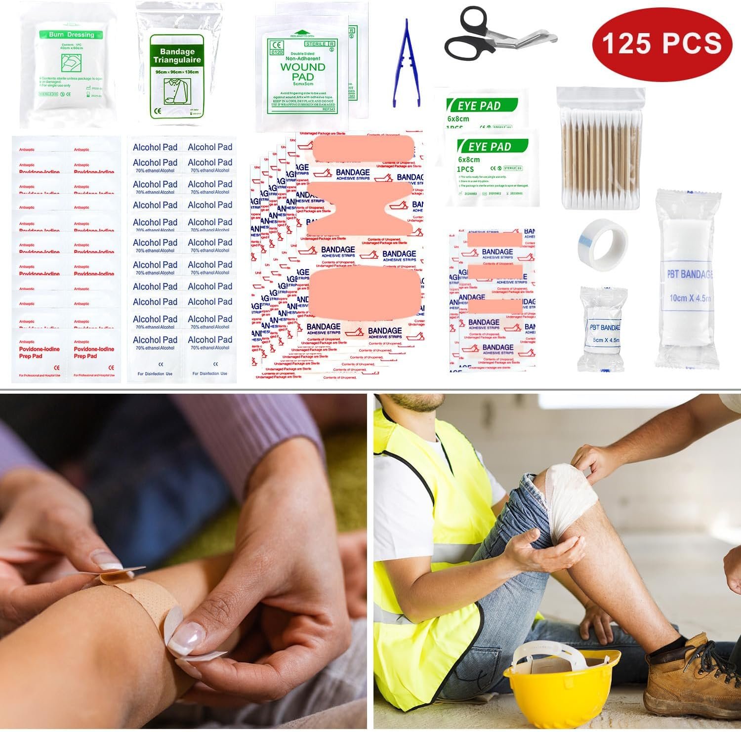 First Aid Kit:125 pcs medical supplies for basic bind up wounds,Wound Care, Gun Shots, Blow Out, Severe Bleeding Control and More.