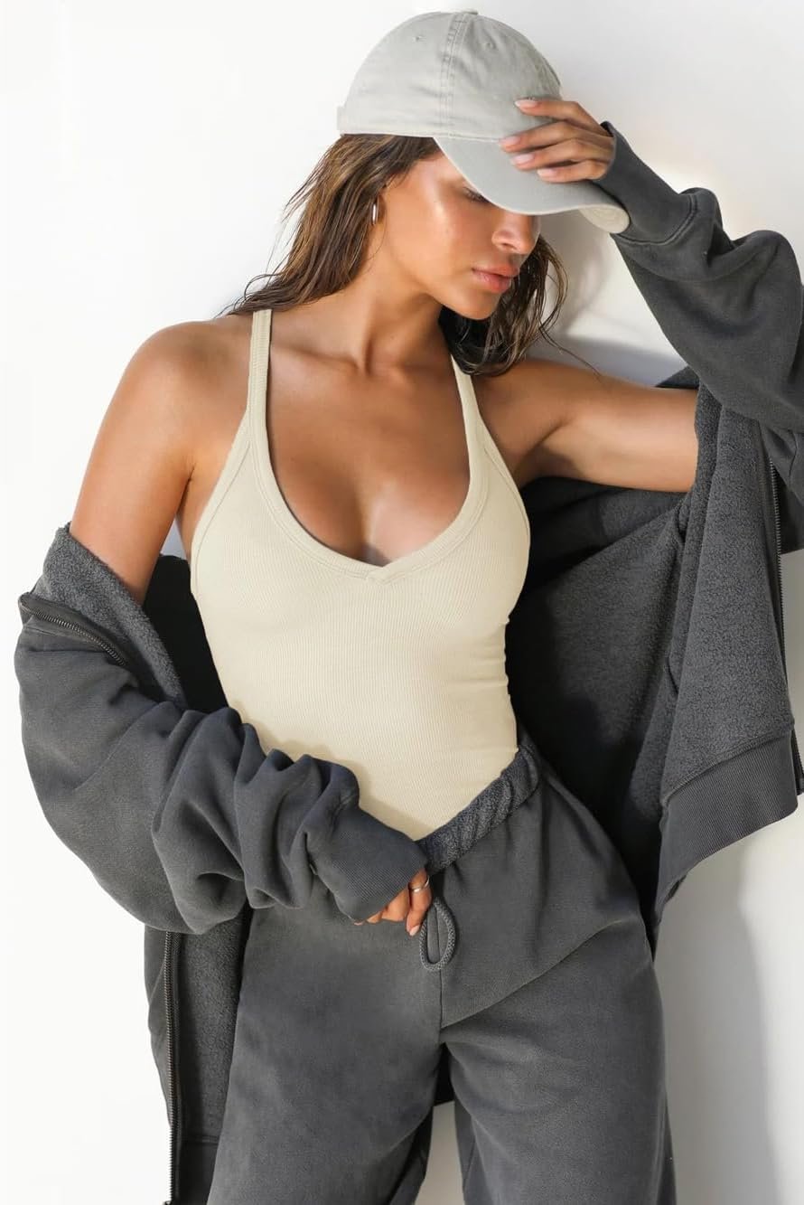 Womens Sleeveless Racerback V Neck Casual Basic Cotton Ribbed Fitted Tank Top