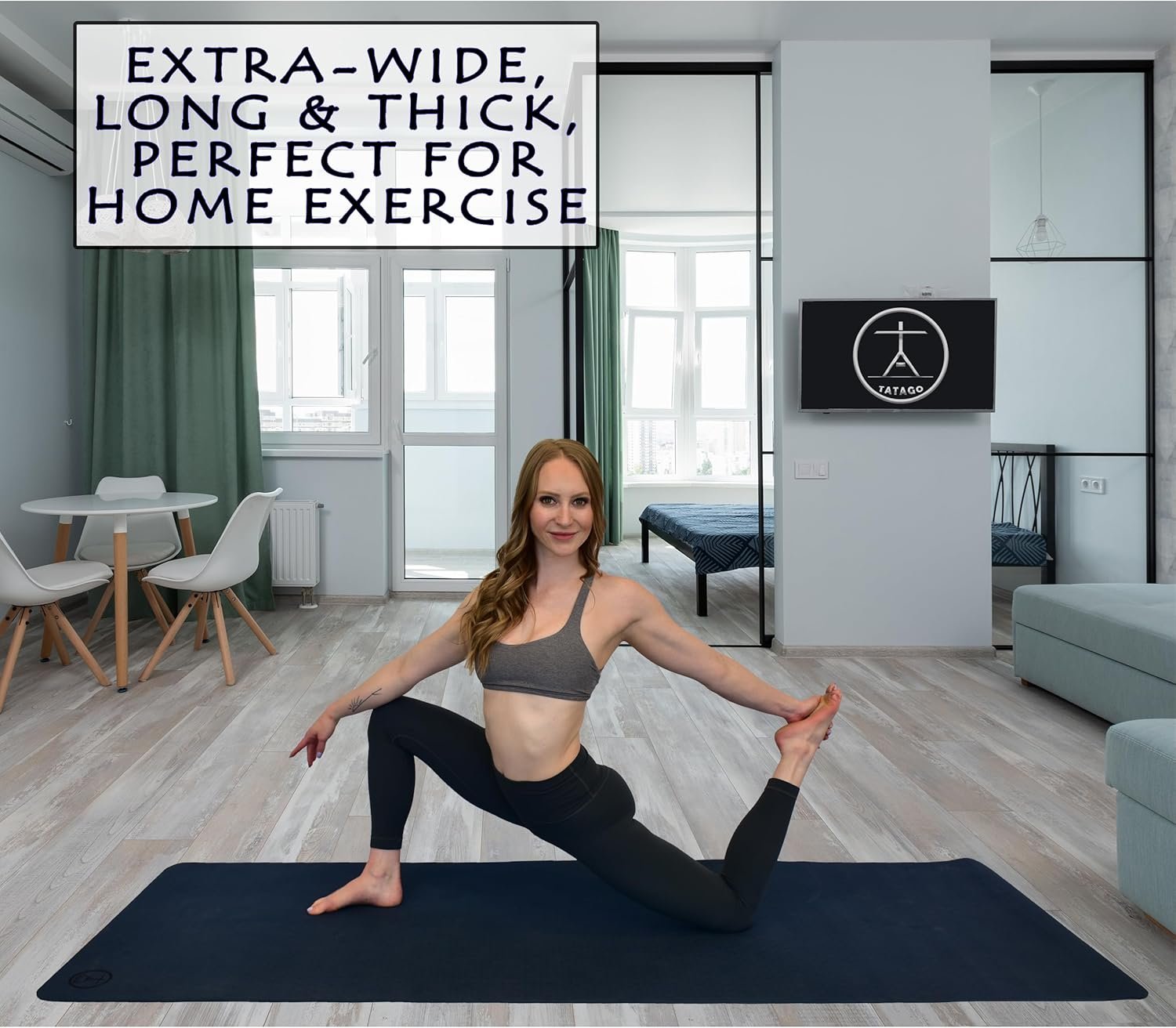 The Tatago oversized stretch mat was designed for taller individuals and those who need more space, providing superior comfort and support for your joints and muscles during your yoga practice.