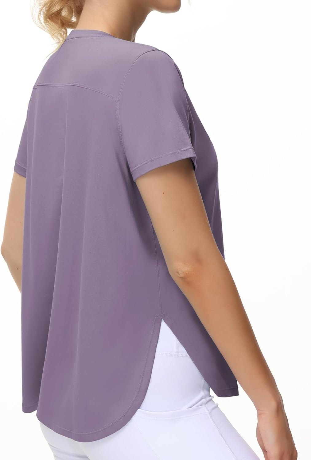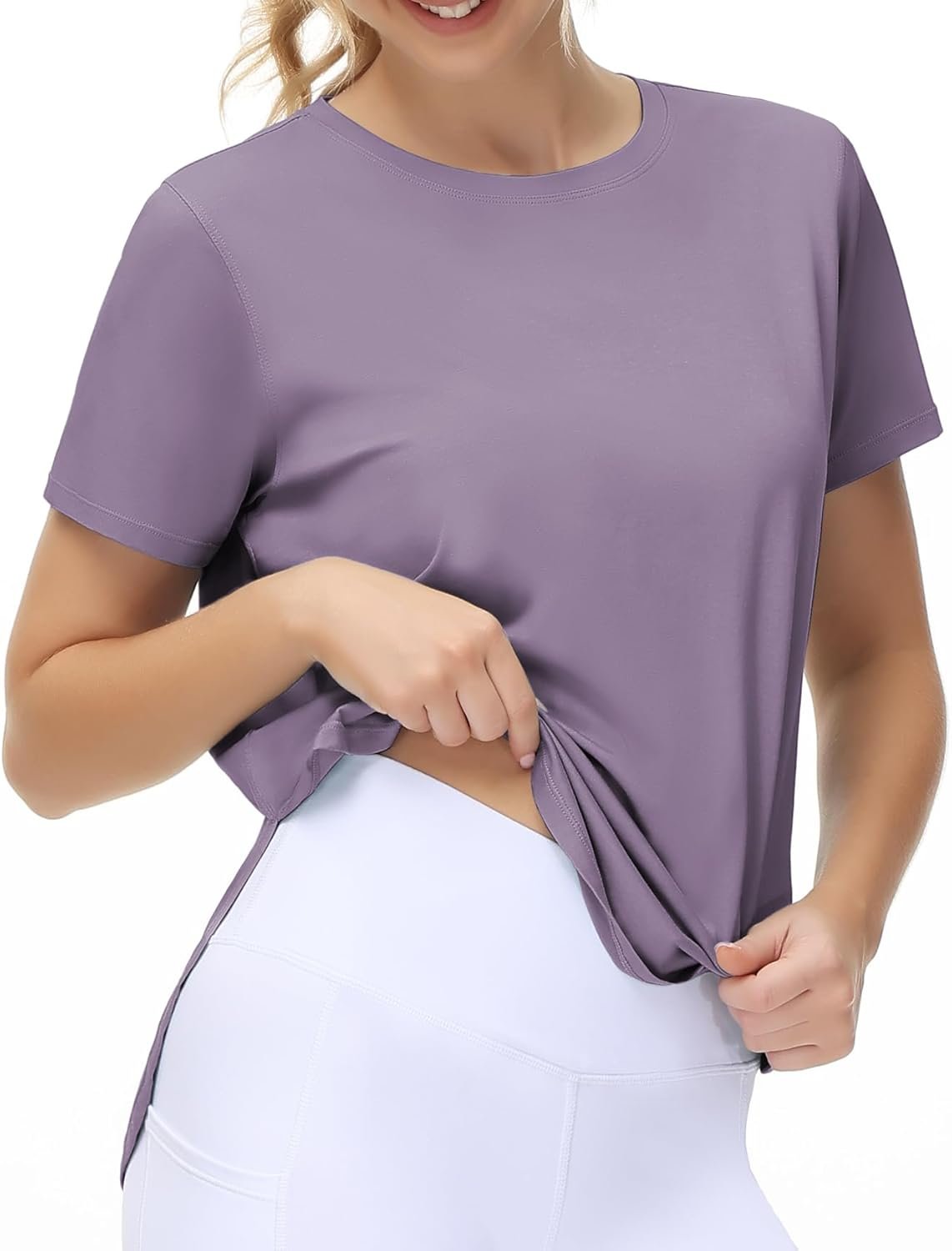 Customers find the shirt has a nice fit, flattering length for short torso girls, and comfortable fabric. They appreciate the soft, stretchy material that holds up well after washing. The lightweight, breathable fabric is suitable for workouts. However, opinions differ on shrinkage.