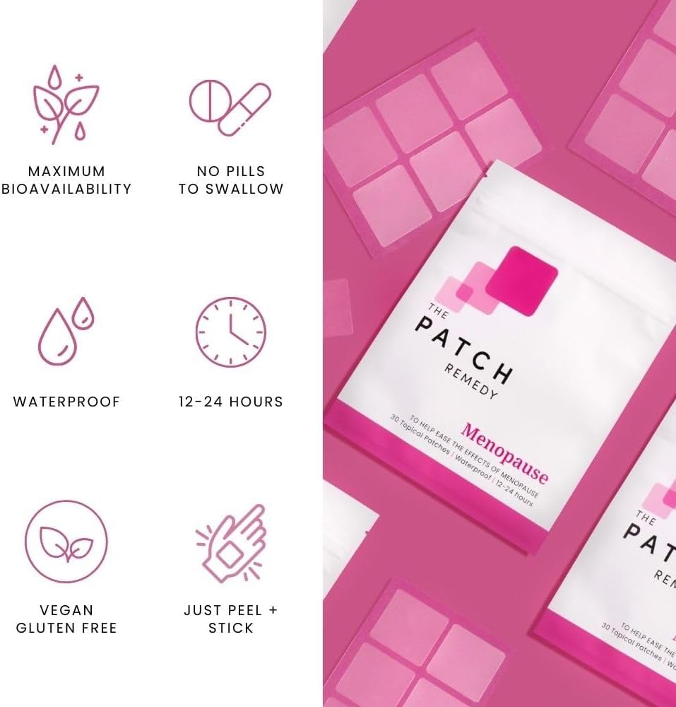 NATURAL MENOPAUSE RELIEF – The Patch Remedy’s Menopause Patches are designed to help alleviate the uncomfortable symptoms of menopause & perimenopause. Use them day or night when sleeping, they are Infused with potent botanicals like black cohosh, valerian, and skull cap, these patches can help reduce hot flushes, mood swings, and sleeplessness.