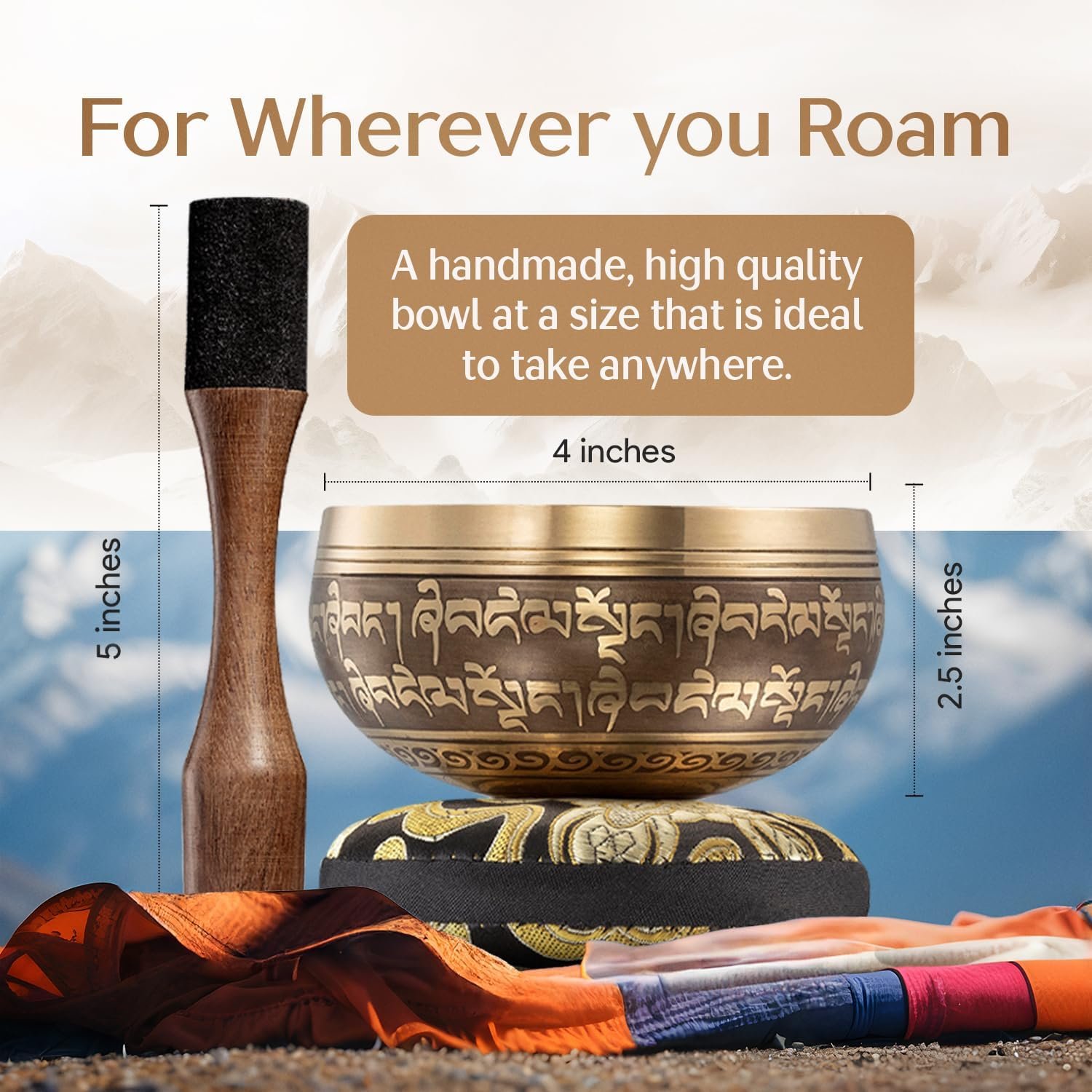 Enhance Your Practice: Elevate your meditation sessions with our Tibetan singing bowl. Whether used as a meditation bell, mini gong, or part of your sound bath instruments, this Tibetan bowl set promotes relaxation and mental clarity, enriching your sound therapy and spiritual practices. Perfect for incorporating Tibetan bells and sound bowls.