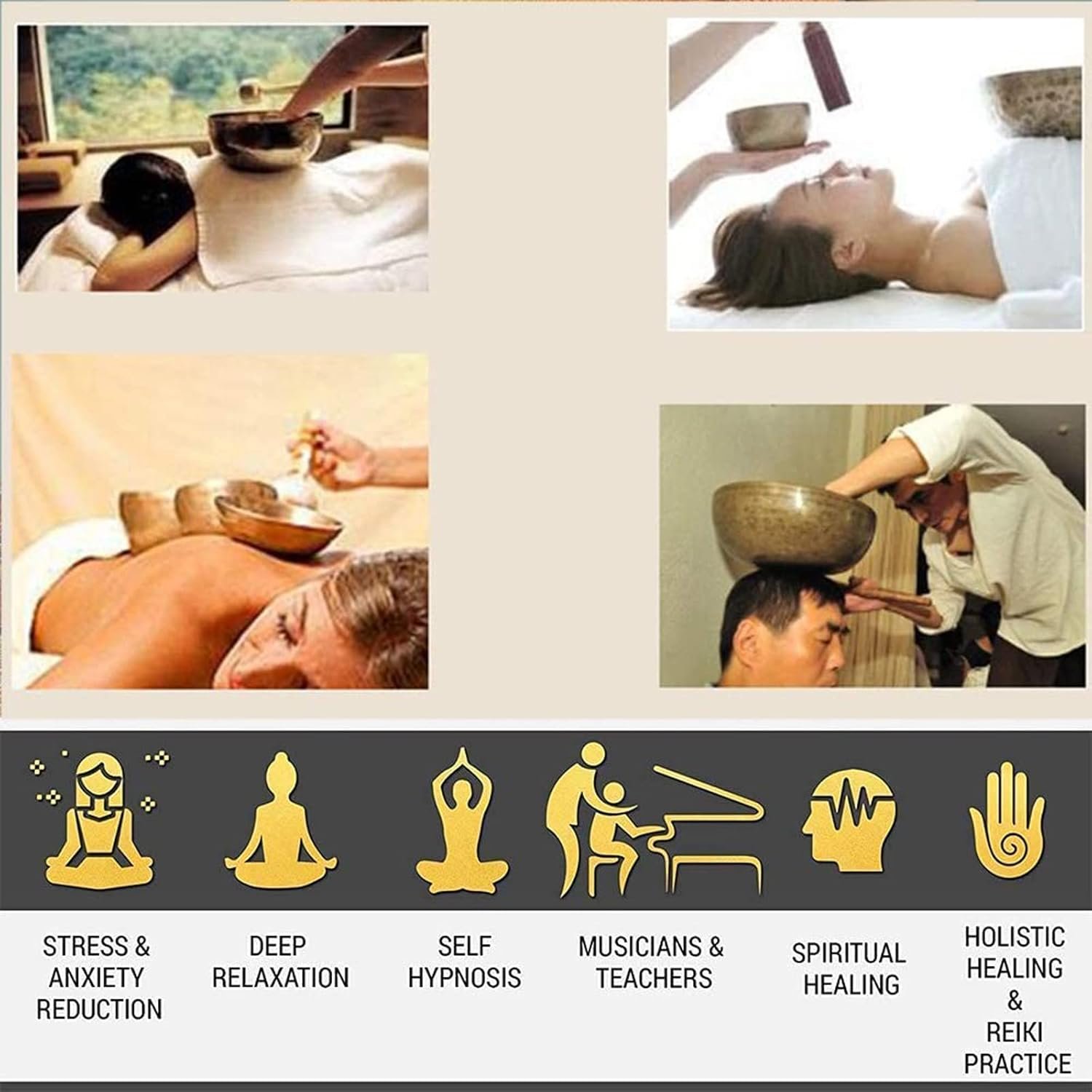 Scientific research has been that Tibetan singing bowls produce theta and alpha brainwaves which are connected to different states of consciousness and open you up to insight and calm, beyond the rational mind.