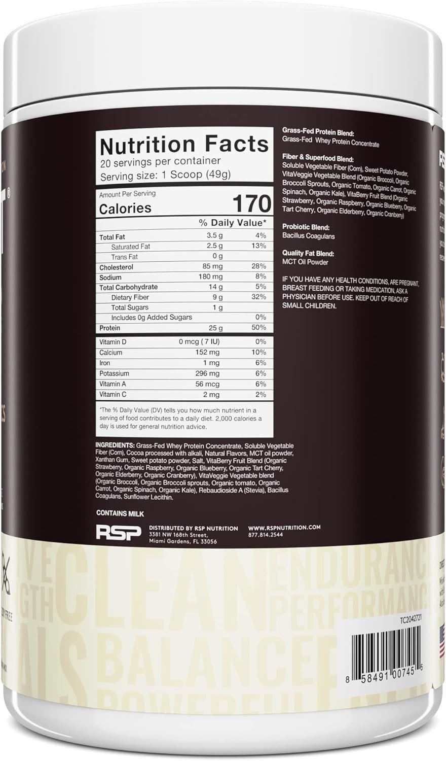 All-in-One Performance Nutrition – So much more than just a protein powder. Each serving also contains 12 organic fruits & vegetables, probiotics, prebiotic fiber & MCT oil for additional immunity support & gut health. Complete, performance nutrition in every scoop.