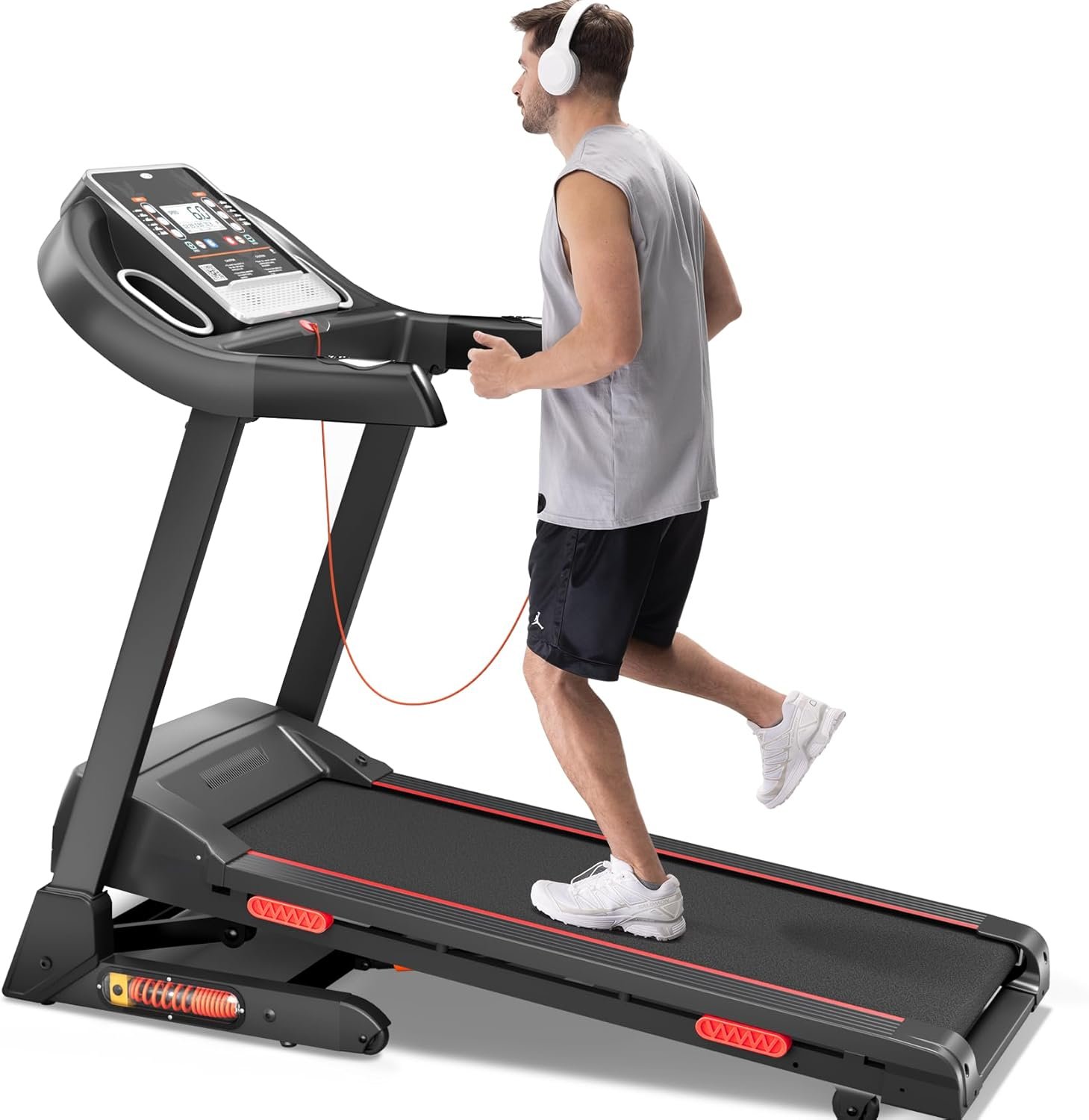 【Versatile Console】Take control with our Multi-Functional Console, allowing you to effortlessly adjust speed, incline levels, choose from 12 preset programs, and monitor your heart rate, distance, time, and calories in real-time for a comprehensive view of your workout data.