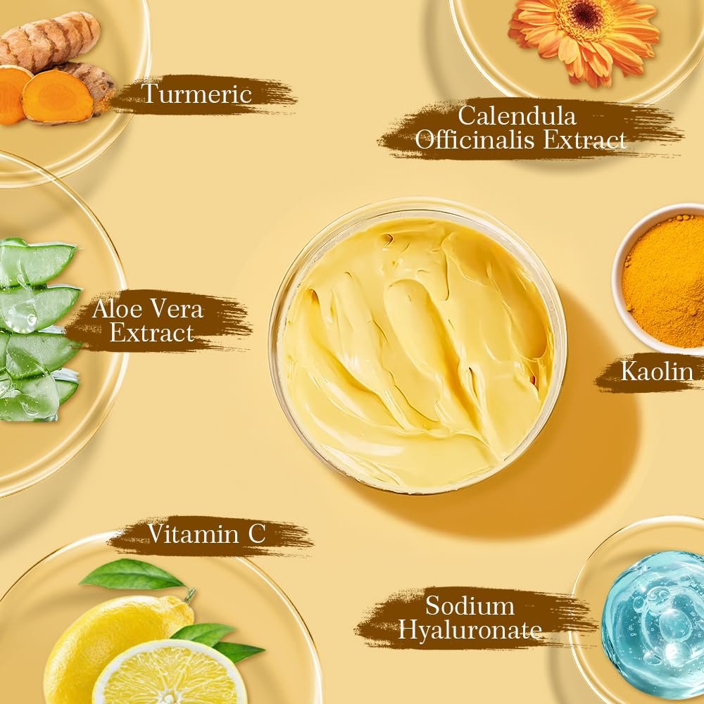 【 Vitamin C Turmeric Mask 】 Rich in vitamin C and organic turmeric, effective in preventing pigmentation. Add our turmeric mask to your daily skincare routine to reveal hydrated, glowing skin by addressing dullness and promoting a more even complexion