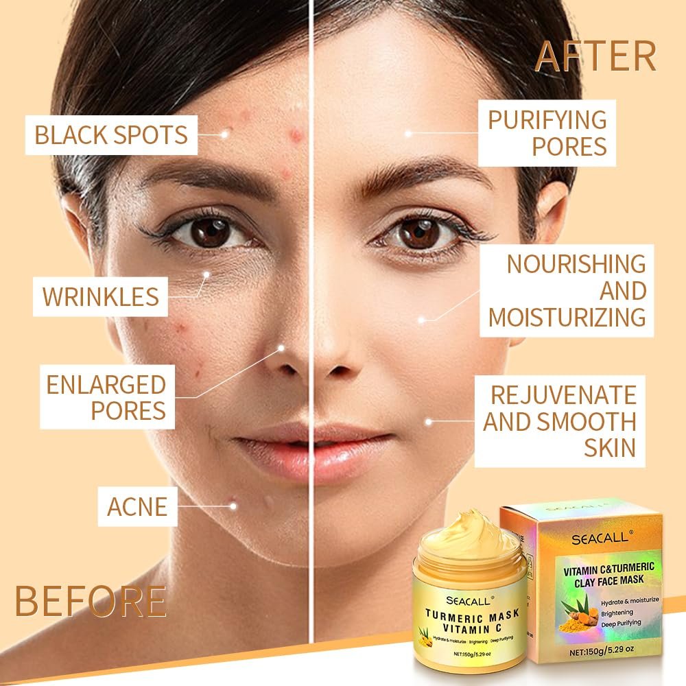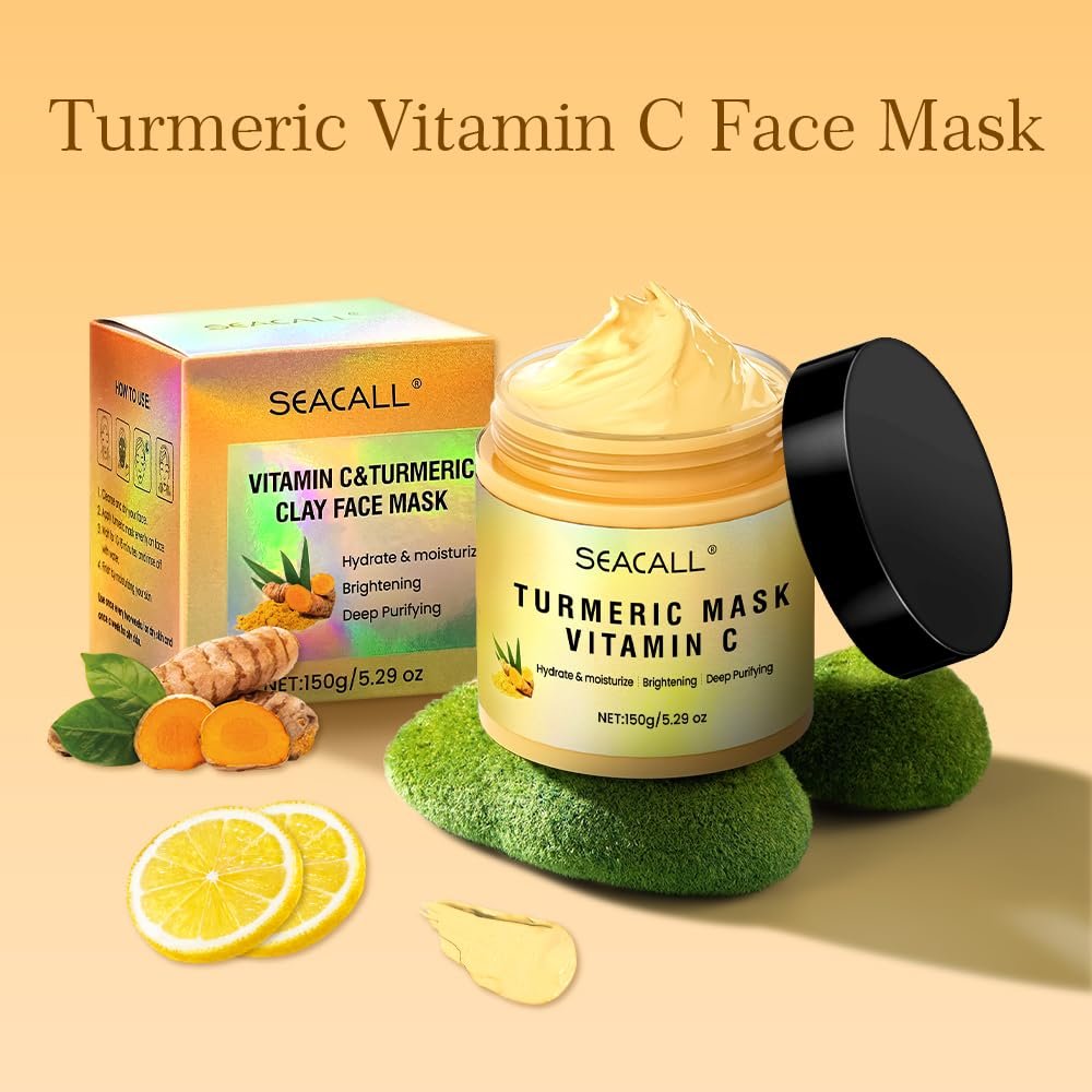 Vitamin C Face Mask with Kaolin Clay and Turmeric for Dull Skin and Blemishes,Facial Mask for Oil Control and Moisturizing