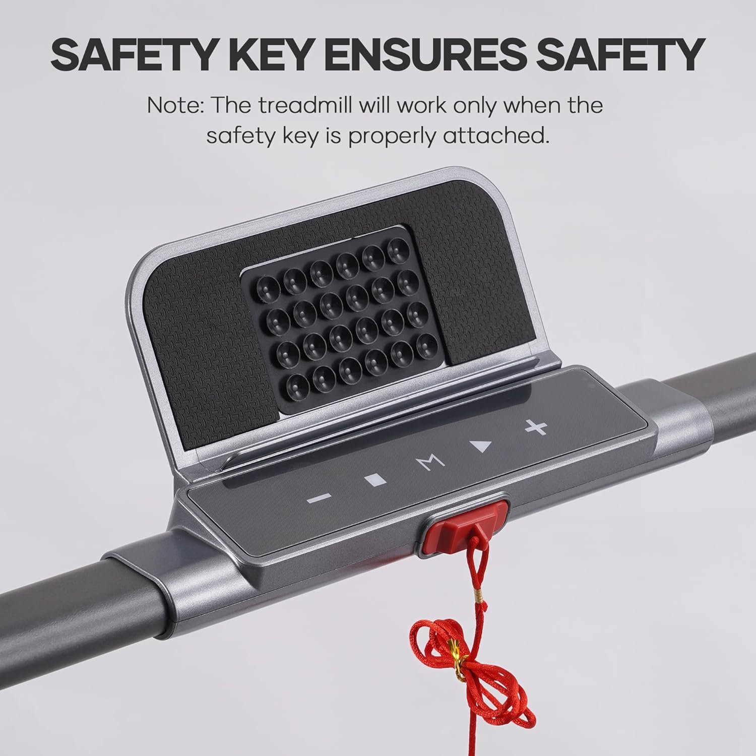 Space-saving Priority: Our walking pad offers you a one-stop convenient experience, eliminating tedious assembly and allowing you to start exercising immediately upon unpacking. Its unique foldable design enables the treadmill to effortlessly fit into various home environments, whether it’s a spacious mansion or a compact apartment. If the safety cord is not connected before starting the under desk treadmill, treadmills for home will emit an abnormal sound