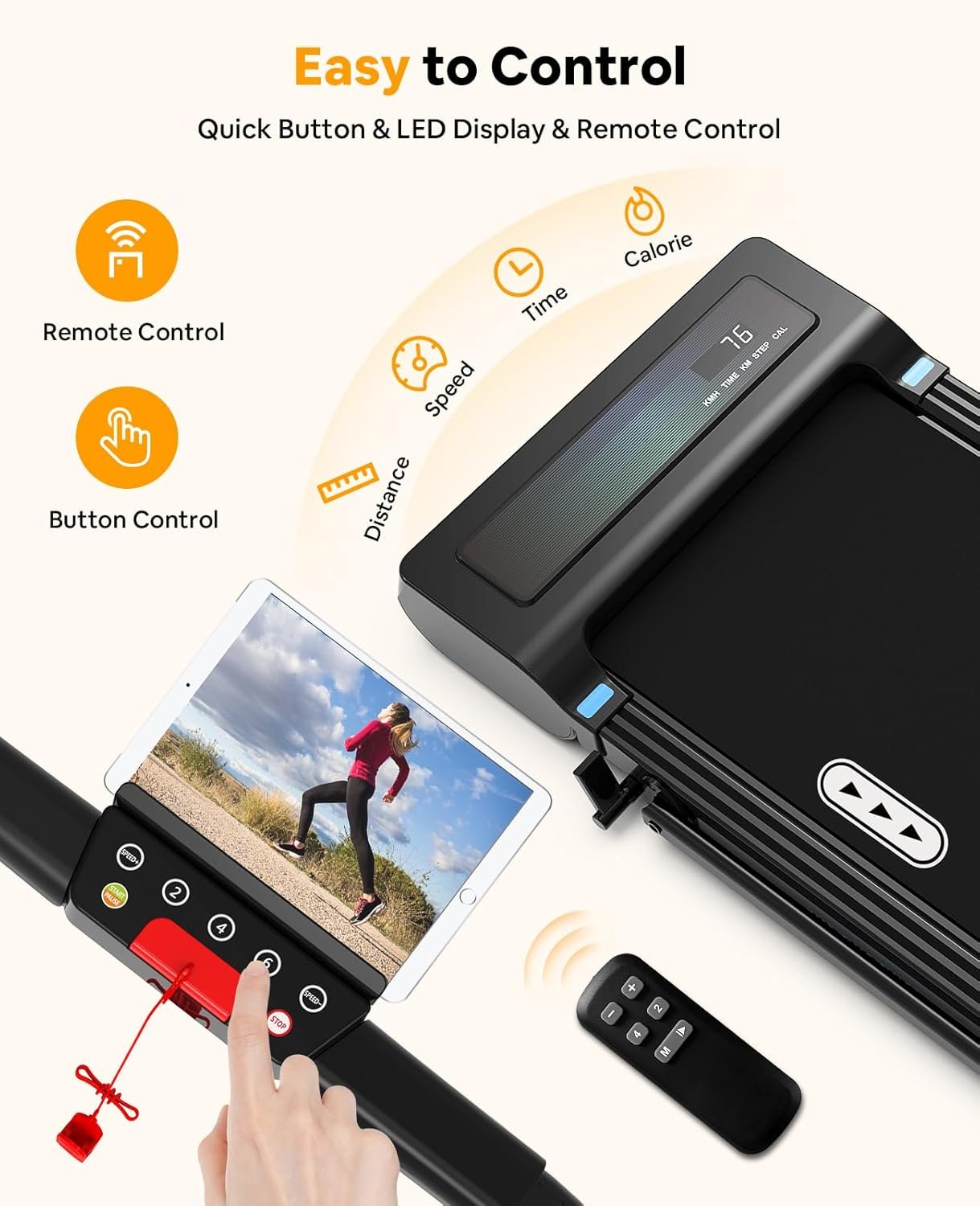 [LED DISPLAY & REMOTE CONTROL] – Experience real-time exercise tracking with the LED display on our walking mat treadmill. Easily monitor time, calories, steps, speed and distance.The LED screen displays the speed in real time during your workout.With the included remote control, you can easily modify the speed and start or stop the treadmill without interrupting your workout routine.