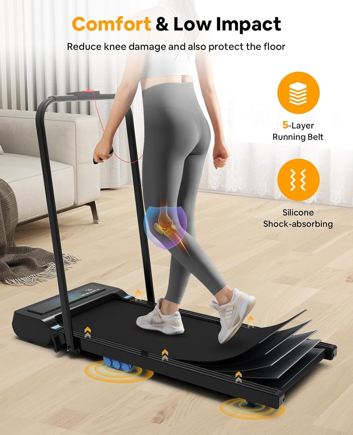 [IDEAL FOR HOME USE] – Our compact treadmill offers the convenience of working out in any weather, making it perfect for home office use. You can stay active and healthy without leaving the comfort of your home.