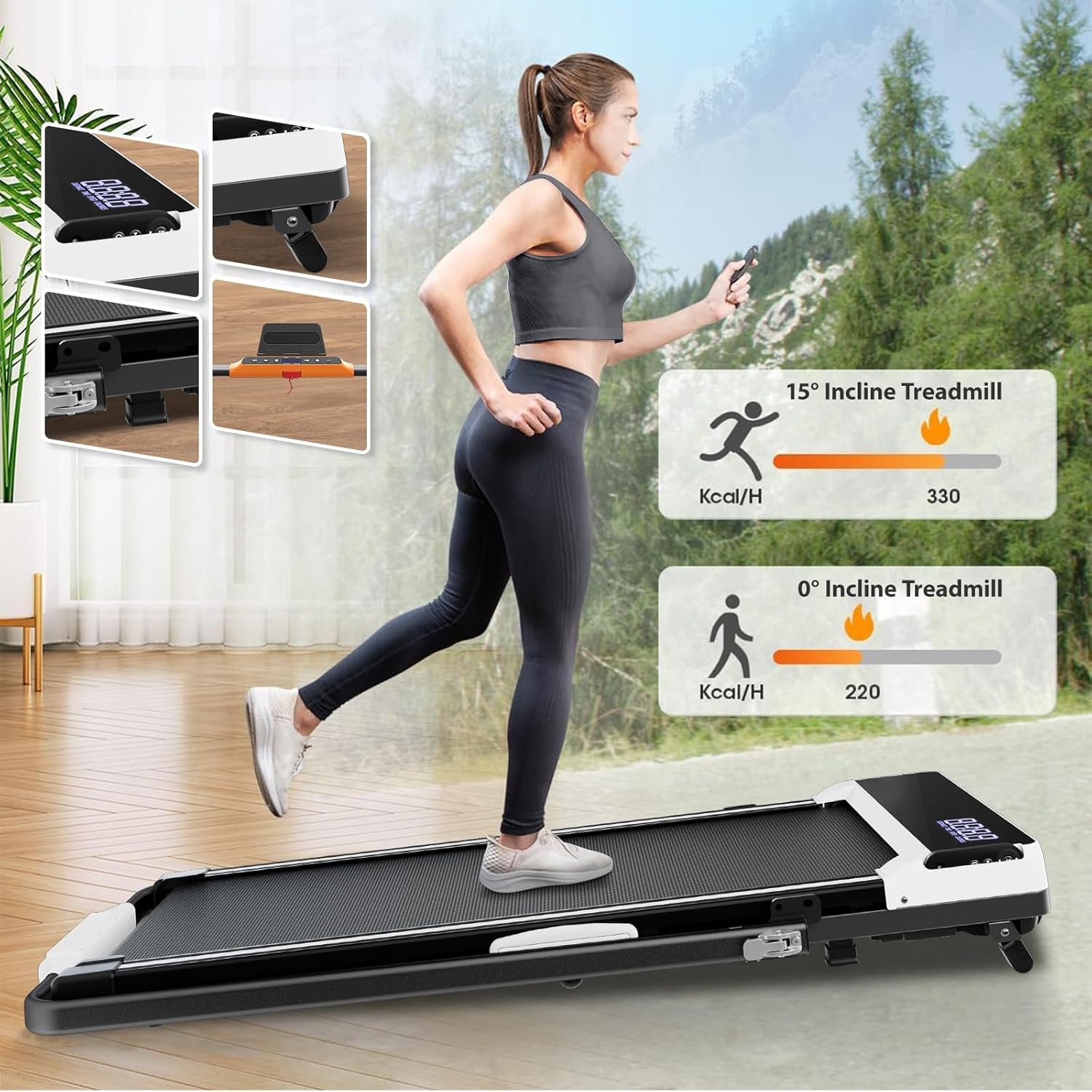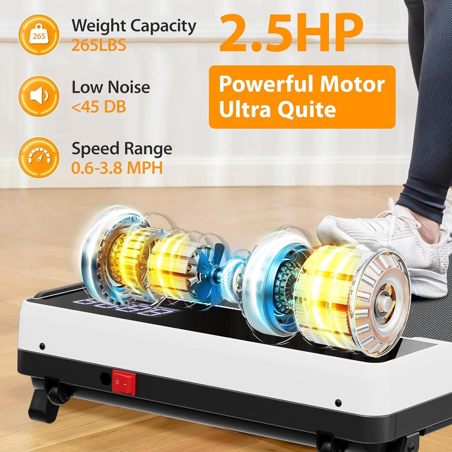 【Easy to Fold & Easy Movement】Folds in just one step! The compact under desk treadmill is just 4.5 inches thick. The treadmill has two front wheels, allowing you to easily move and place it under a desk, bed, or sofa. Our under-desk treadmill requires no installation and is ready to use right out of the box.