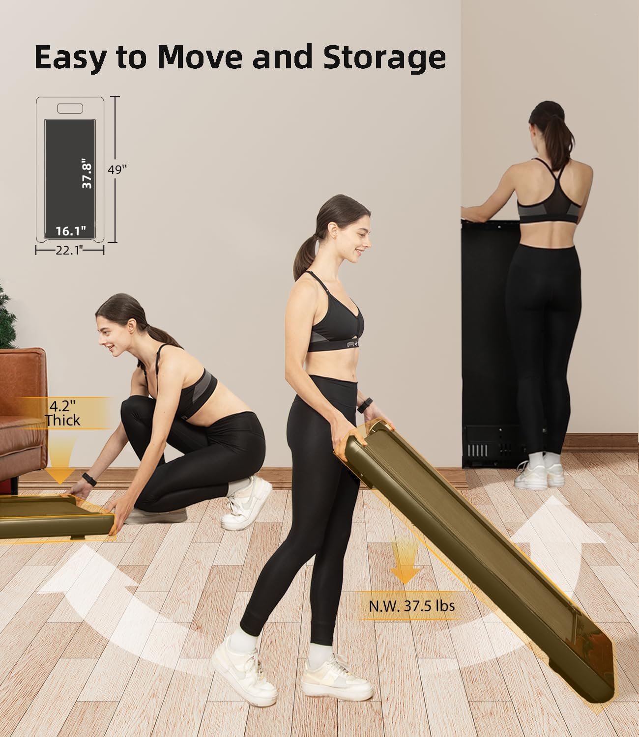 【Premium Anti-slip Running Belt & Shock Reduction System】: The under desk treadmill offers a large 16.1 inches * 37.8 inches running belt, just run as you like! Five-layer non-slip running belt with built-in shock reduction effectively reduces joint impact and protects your knees
