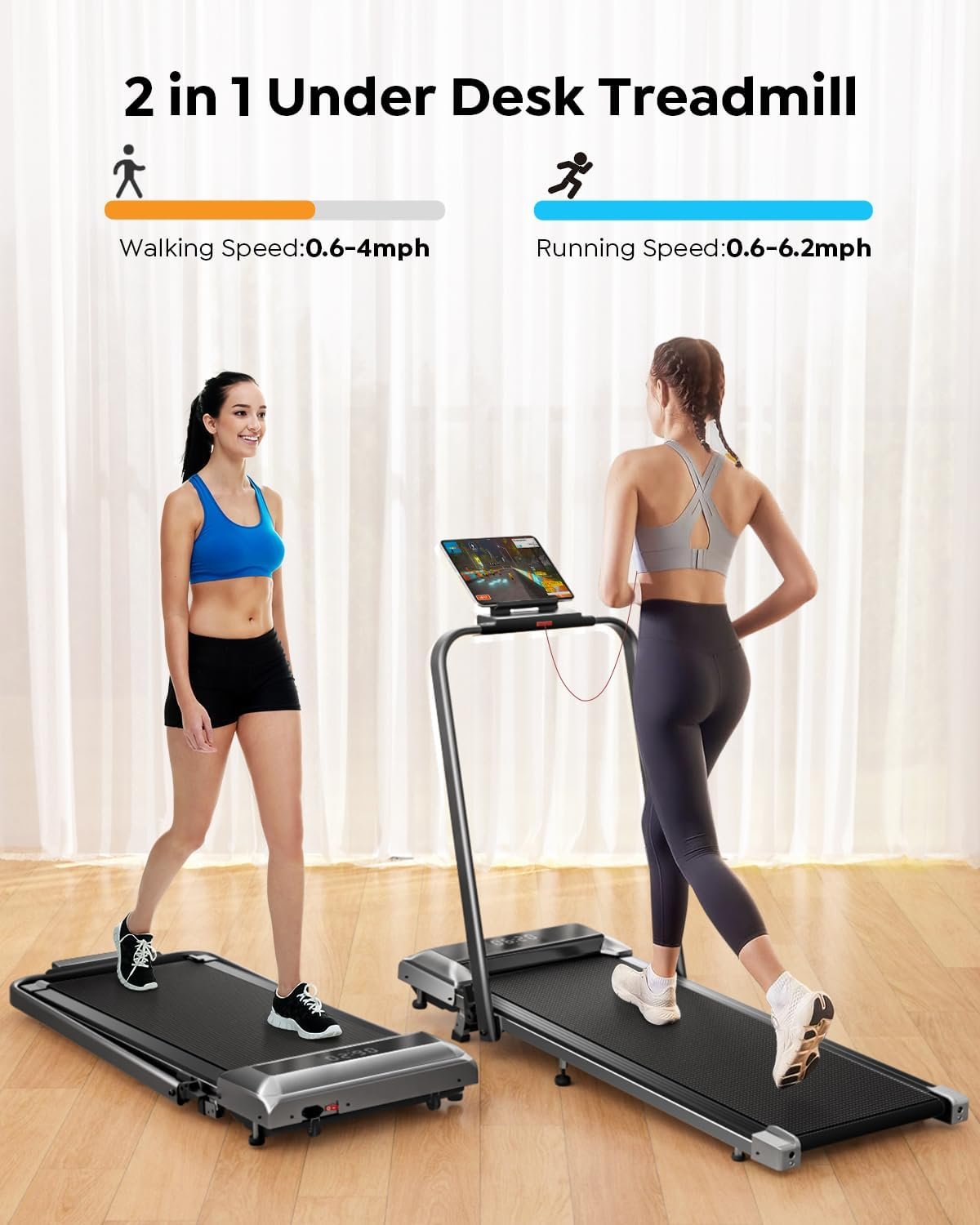 【Boost Fitness with Incline Treadmill】Our walking pad treadmill features a 10% manual incline, which simulates more realistically climbing scenarios to boost calorie burn by up to 60%. One step to set up without any tools, you can tailor workout more efficiency to meet fitness goals easily and achieve your ideal physique.