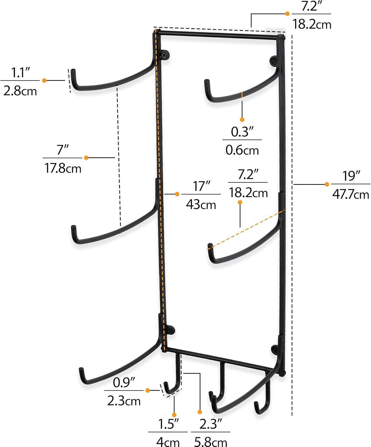 Sturdy and Functional Design: Wallniture Guru 3 sectional wall rack’s heavy-duty design offers you a safe storage space for your thin and thick yoga mat. You can use bottom hooks to hang your hand towels, exercise bands, yoga mat bag and more!
