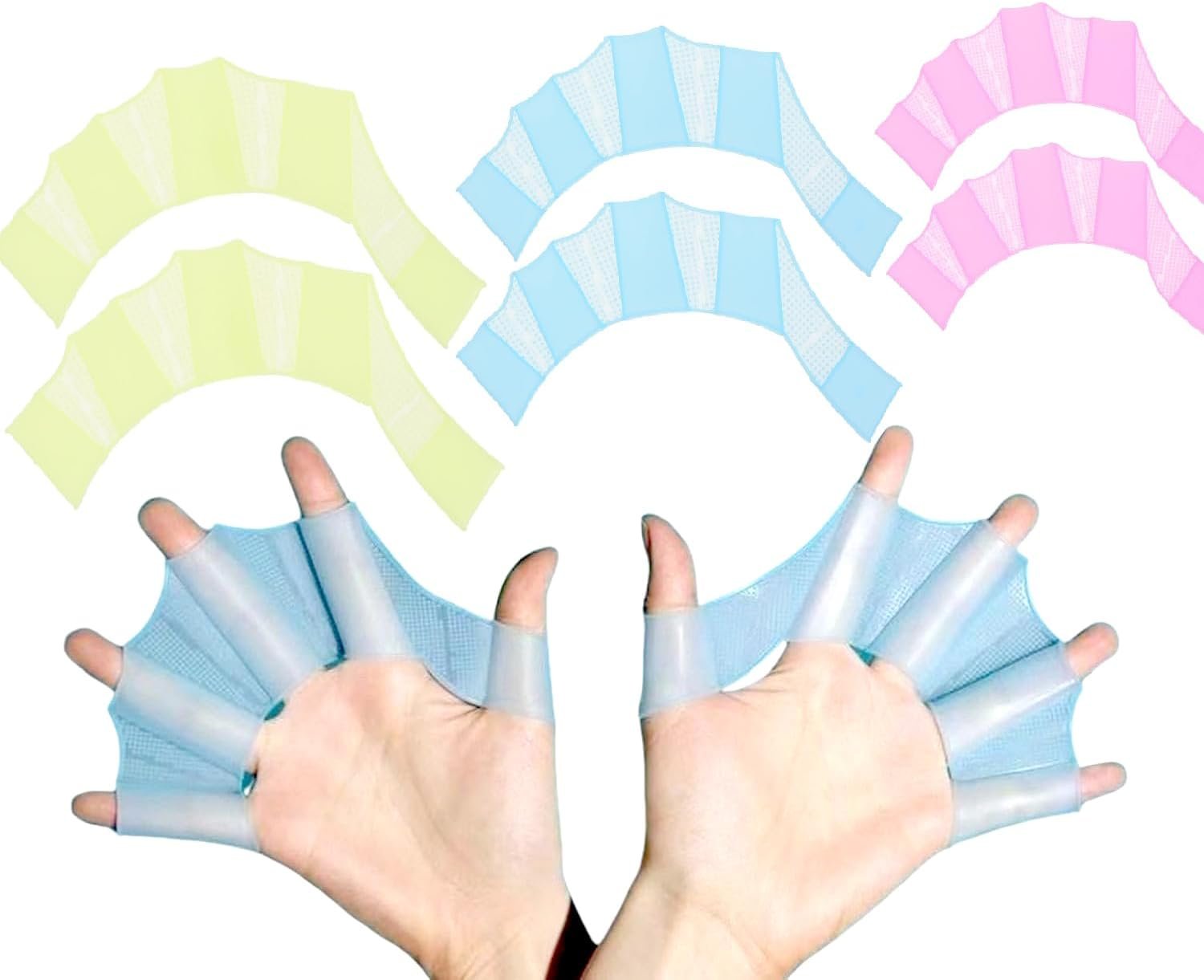 FIVE FINGER SILICONE GEL DESIGN: The webbed design like a frog, you only need to wear them on your five fingers for swimming. They can provide maximum efficiency to the user when swimming. They are very convenient.