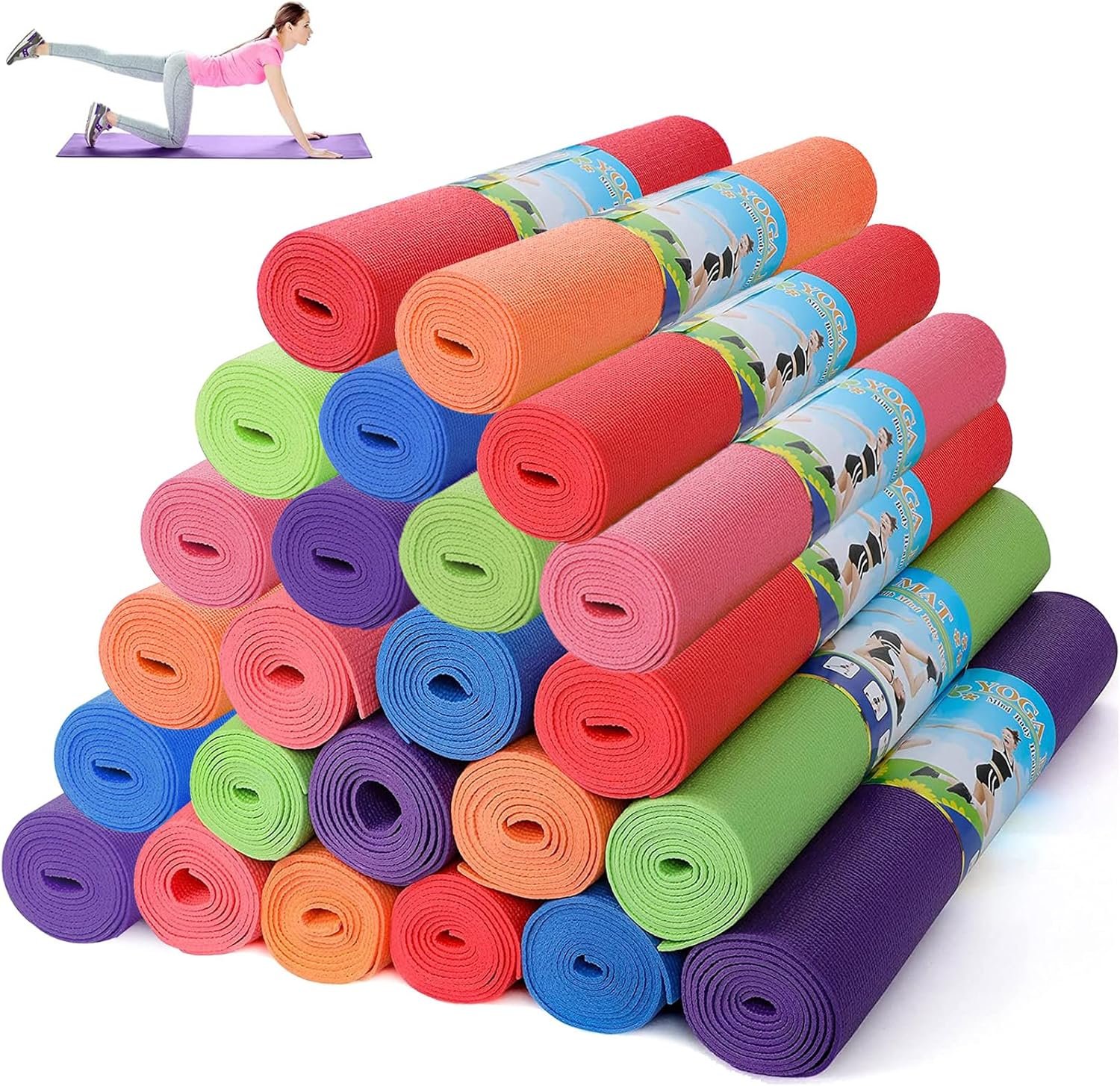 Value Pack: you will receive 24 yoga mats, including 6 colors of red, green, dark blue, pink, purple, orange, 4 for each color, sufficient quantity and bright and colorful colors can meet your daily needs use, replace and share requirements