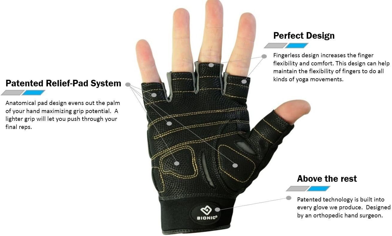 GET THE PERFECT GRIP – PATENTED DESIGN – The Bionic Glove pre-rotated finger design adapts to your hand’s natural curving motion. This patented design gives you a more effortless and comfortable grip that allows you to power through any workout.
