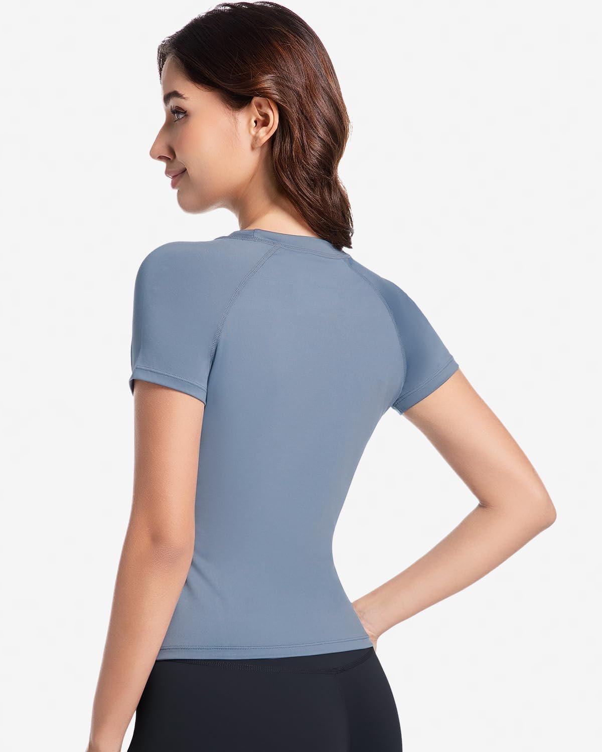 The video showcases the product in use.The video guides you through product setup.The video compares multiple products.The video shows the product being unpacked. women’s compression shirt for yoga Merchant Video