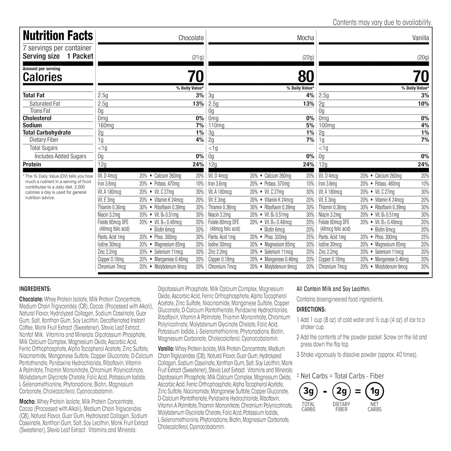Delicious Keto Meal Shake: Perfect for any low-carb or keto-friendly lifestyle at only 1g net carbs, 12g protein, and 3g fat or less. This low sugar meal shake is made with 25 vitamins & minerals for added health benefits. This product is Gluten Free