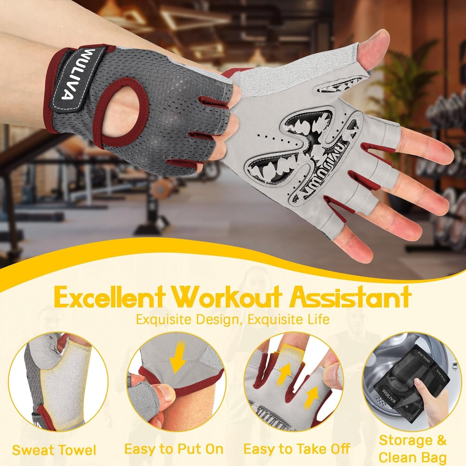 Systematic protection:Ergonomic sponge pads and large honeycomb anti-slip silicone improve traction, reduce tear from slippage, and cushion impacts to prevent blisters and calluses. For female gym-goers, this design is especially needed to aid workouts