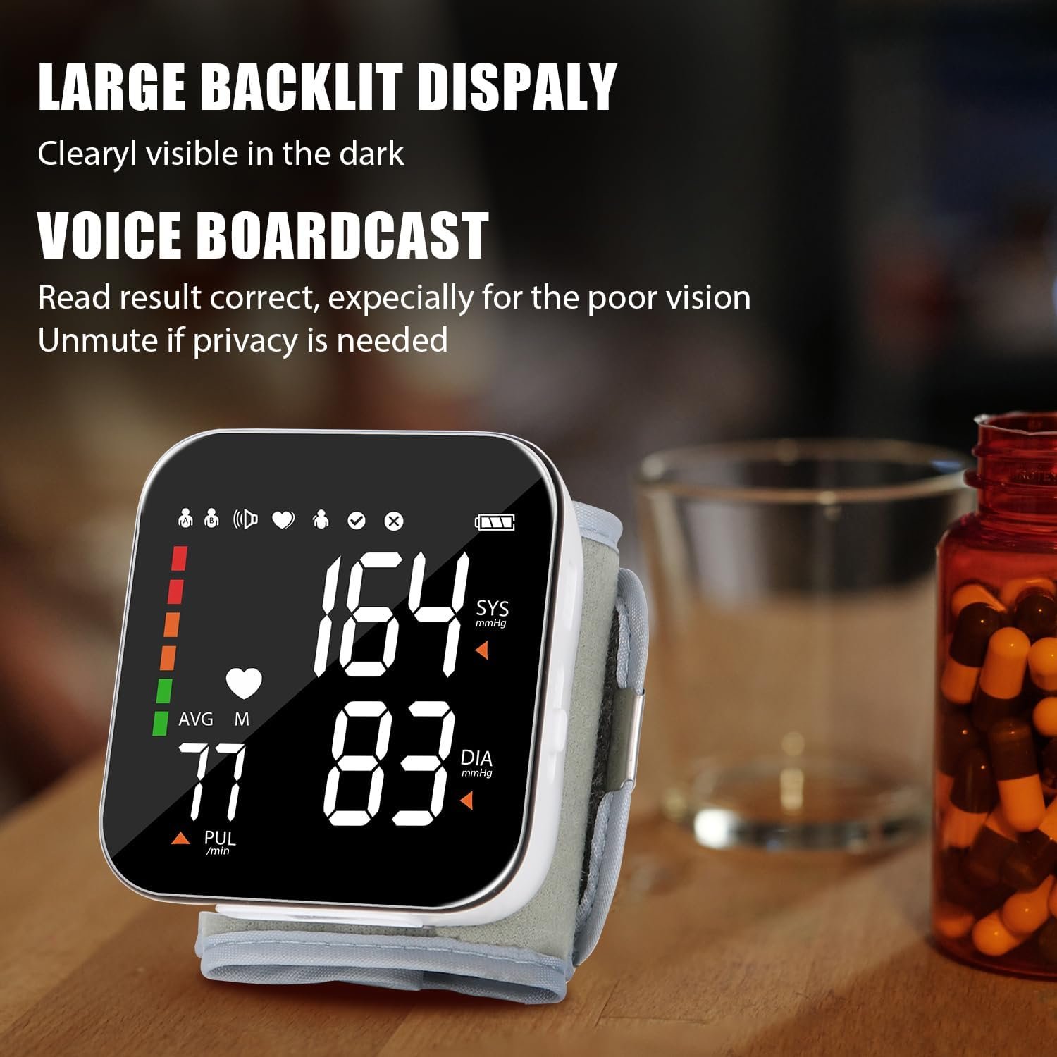 【Voice Broadcast】The blood pressure machine with voice broadcast is ideal for the old or the people with poor eyesight. You can mute the sound if personal privacy is in need.