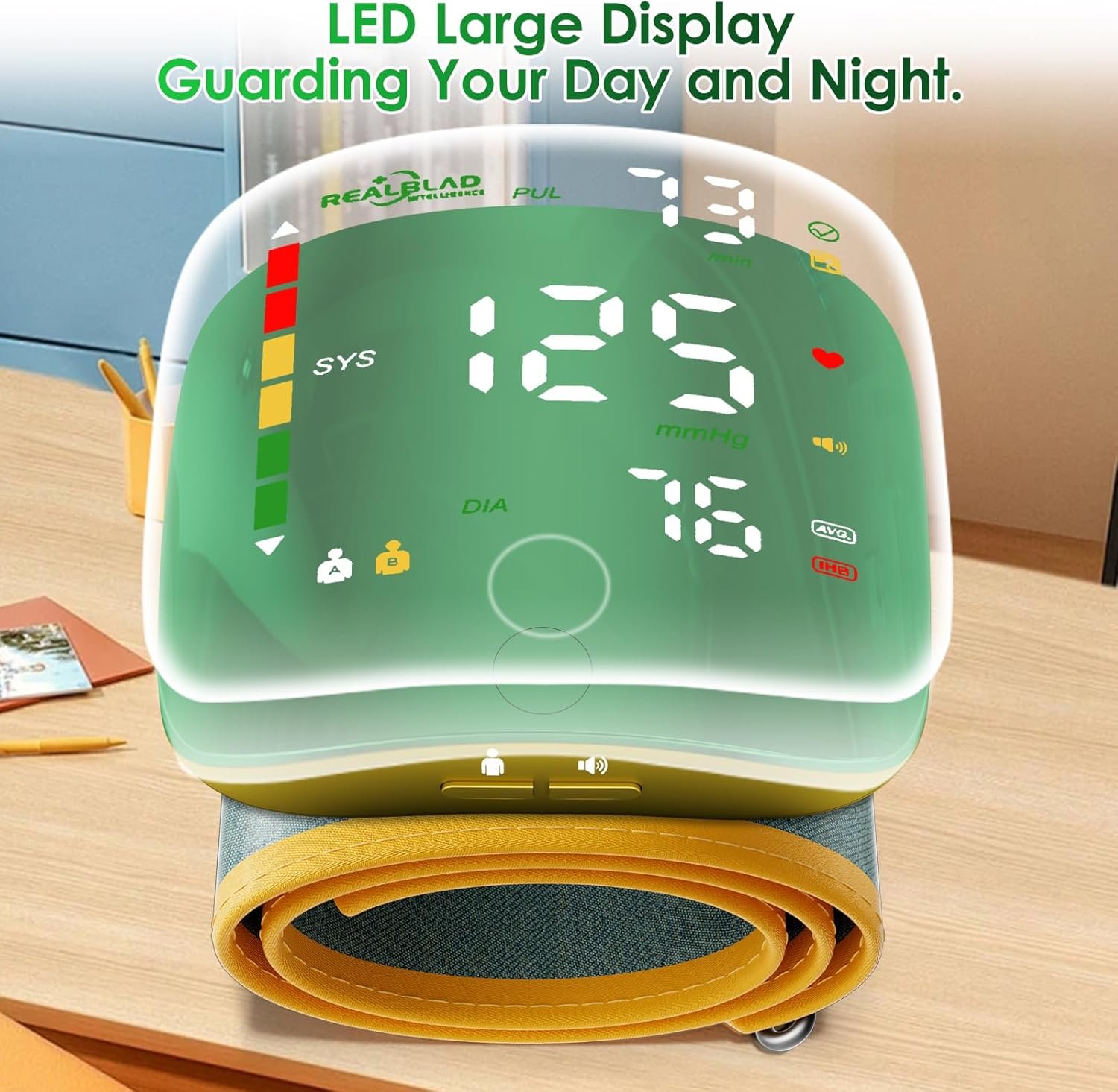Visible and Audible Wrist Blood Pressure Monitor : The LED display allows for quick access to blood pressure measurements with just a simple touch on the screen. The voice feature can be turned on or off according to your needs. It is clear and easy to read, providing a more intuitive operational experience, enabling you to easily monitor your health.