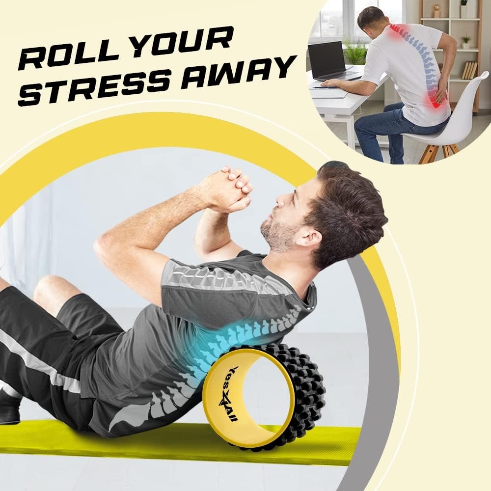 VERSATILE BACK WHEEL: This back wheel, also known as the back roller wheel, can be used for various exercises; its ergonomic design is suitable for yoga, providing relief for back pain through deep tissue massage