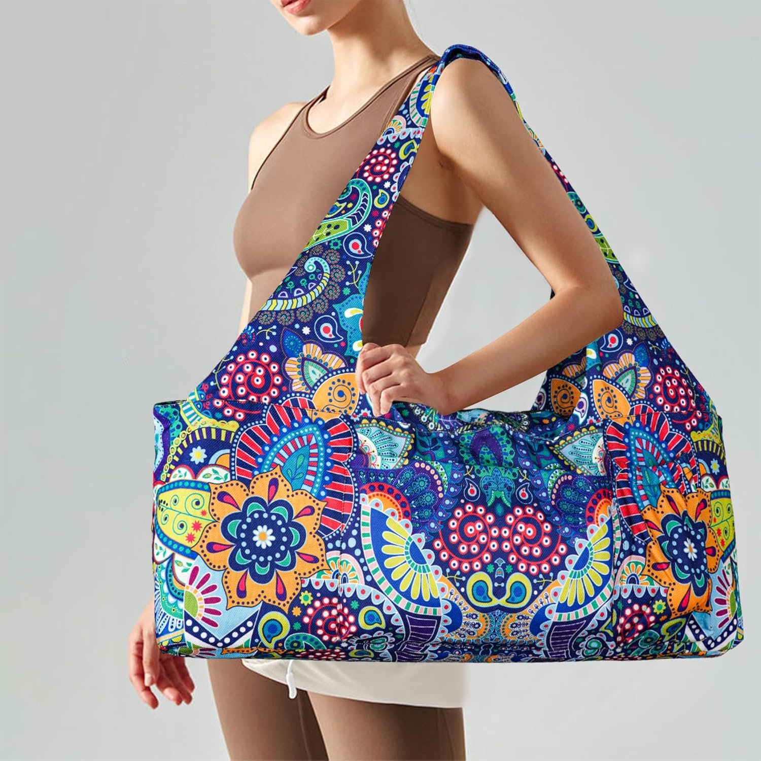Crafted specifically to carry yoga mats in an easy, gender neutral, shoulder strap tote bag form. Several ways for carrying, you can hand carry or shoulder carry our yoga mat holder bag. Double wide shoulder straps prevent from tiring your shoulders. No more hassle packing and carrying your yoga gear to and from the studio. Just slide on your shoulder and go! Combined with fine hand stitching, the bag’s printed designs add more color and value to this yoga bag, vibrant and eye-catching.