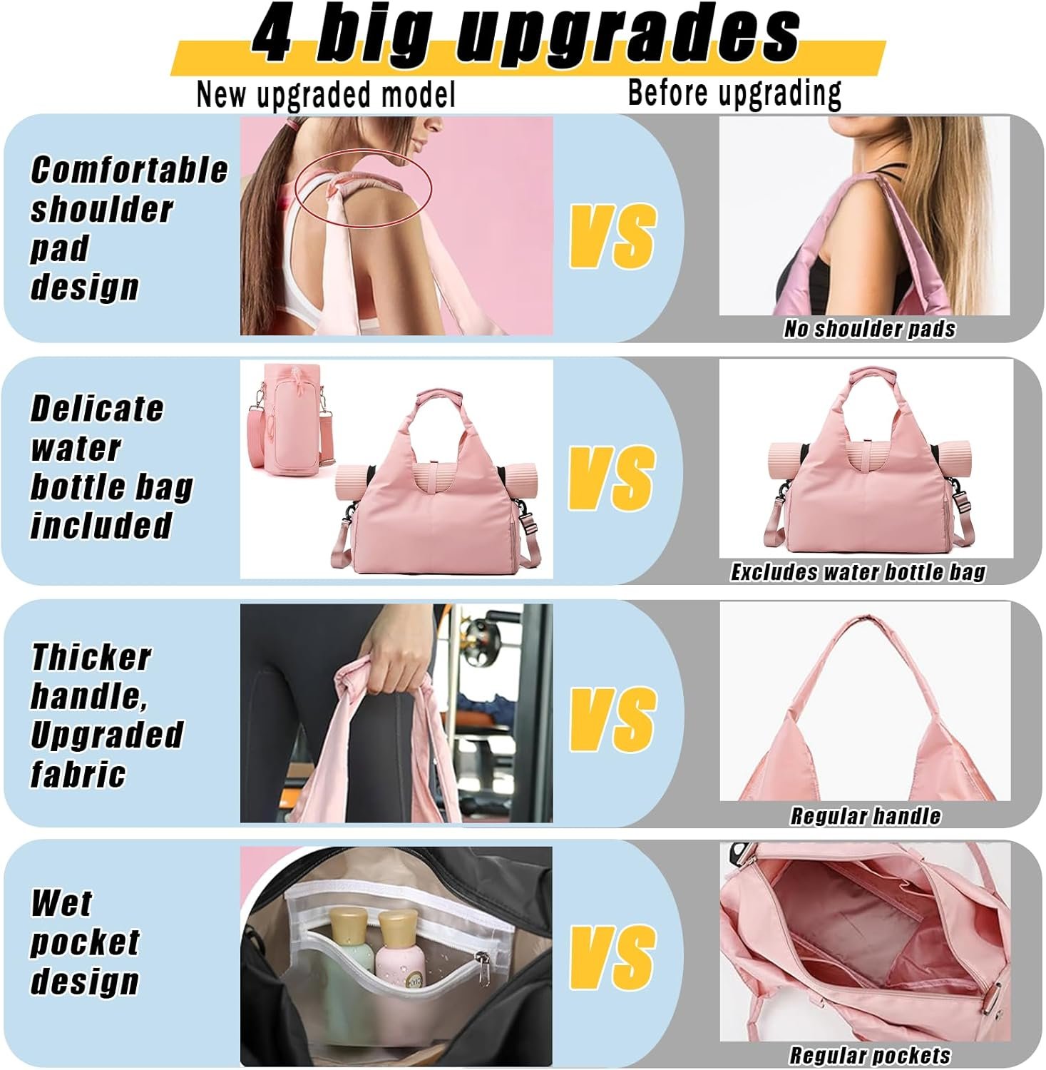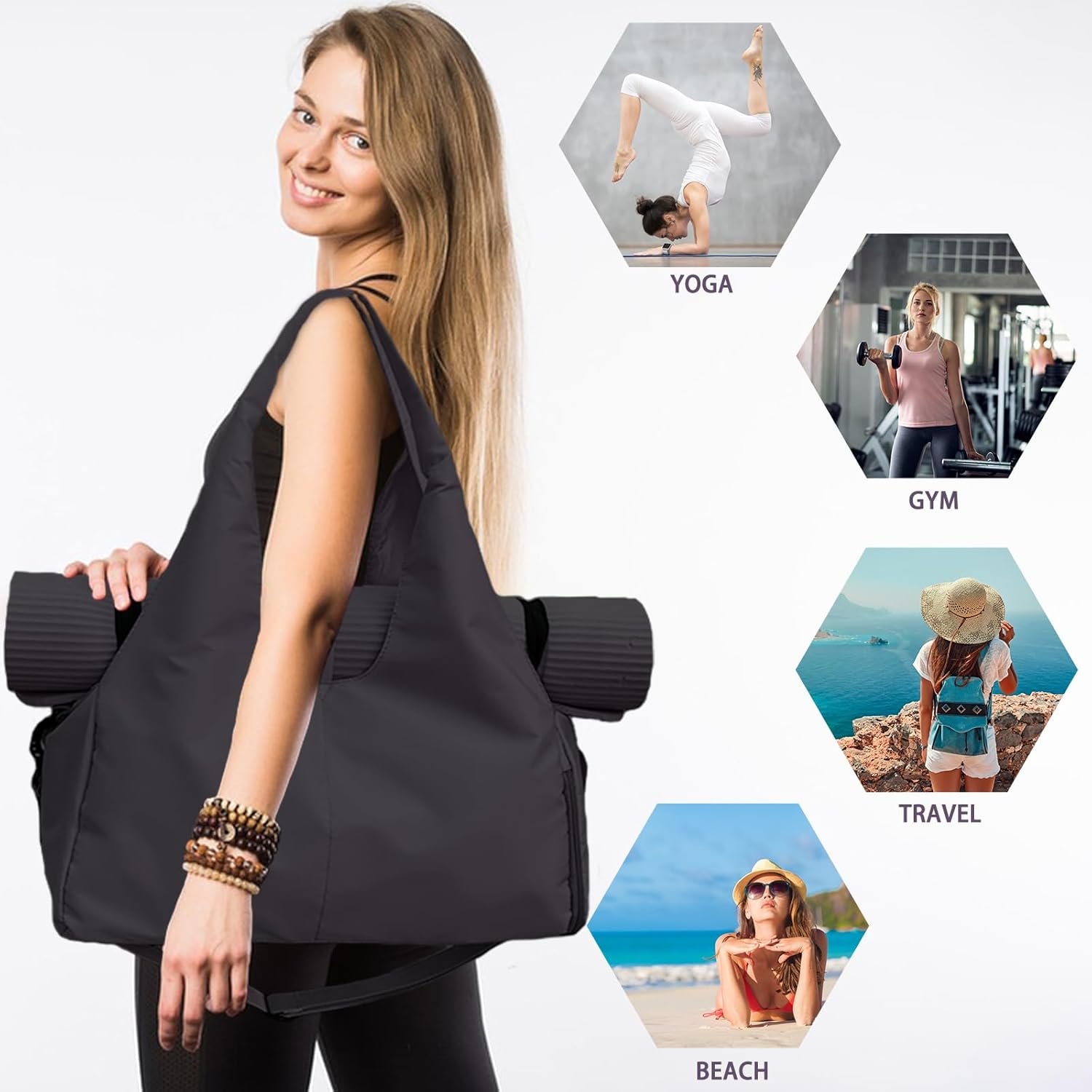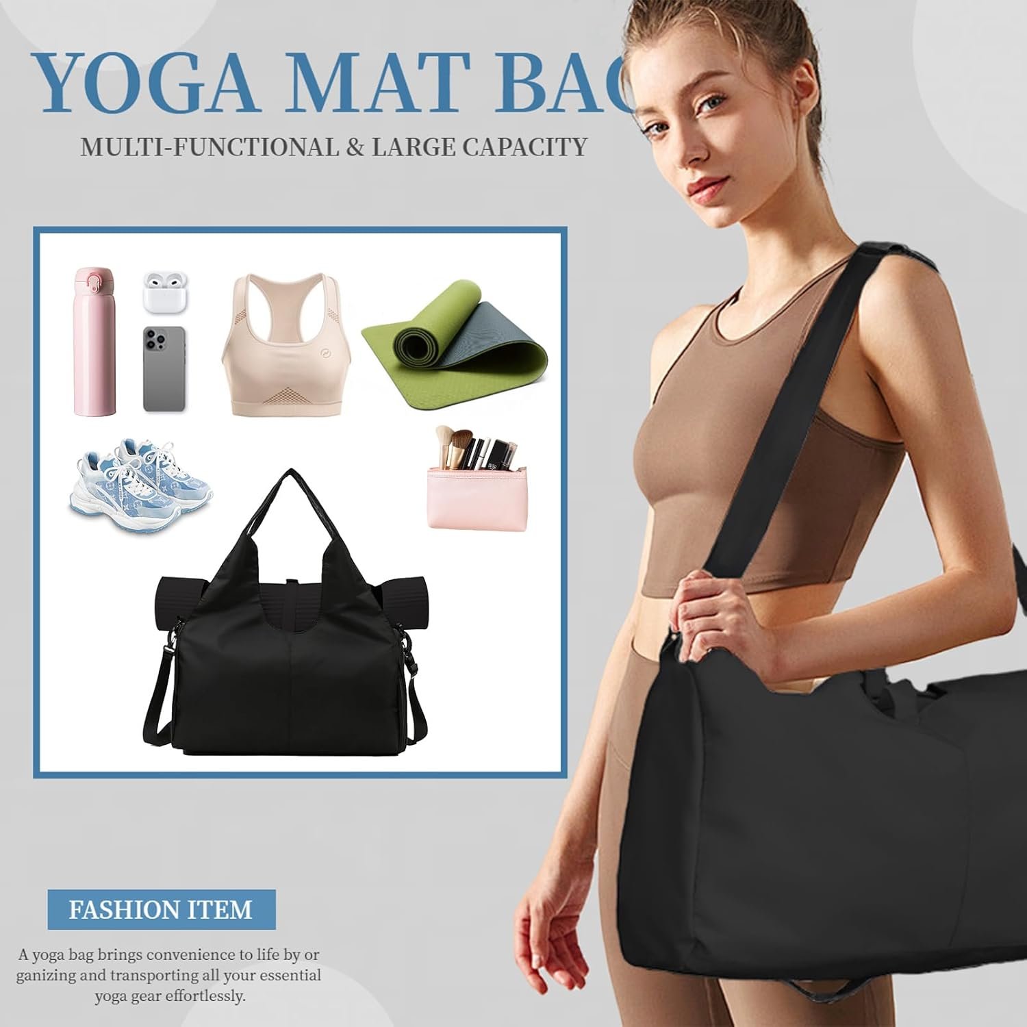 WATERPROOF OXFORD FABRIC: The gym bag for women is made of high-quality high-density Oxford cloth, wear-resistant and waterproof. Our yoga mat bag is stylish, trendy and sturdy enough for long workouts and short trips with friends
