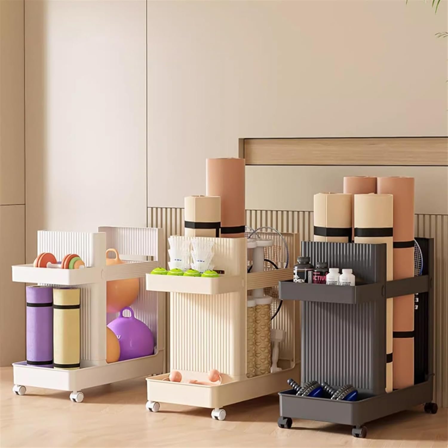 【Yoga Equipment Holder】This yoga mat storage organizer can help to store your yoga equipment, such as yoga mats, yoga strap, resistance bands, foam roller, yoga block, dumbbell, kettlebell etc. Suitable for gym, personal and family gym, fitness club, garage and other occasions.