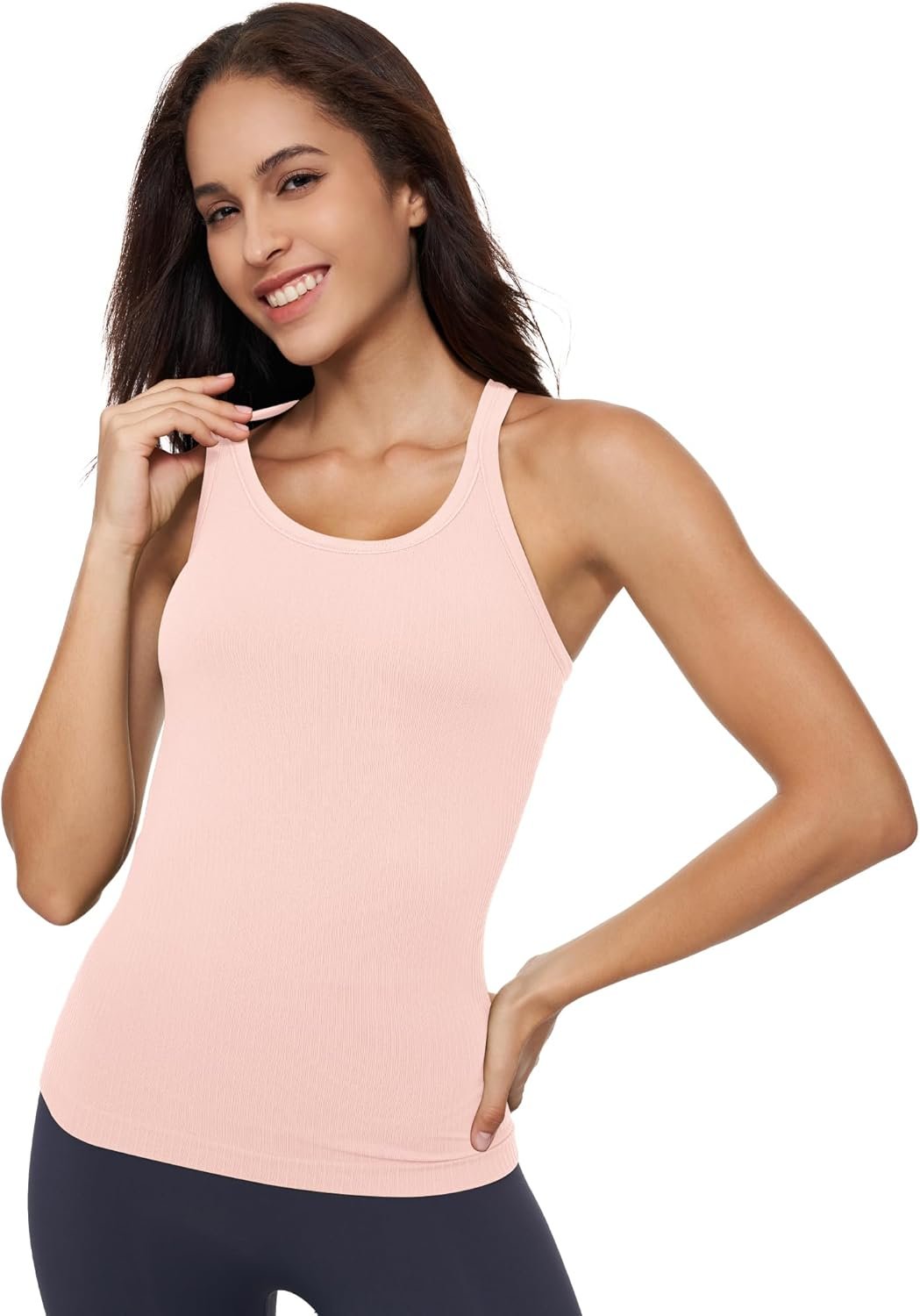 Customers find the tank top to be a good dupe of Lululemon, with built-in bra support that works well for HIIT workouts, and they appreciate its versatility for both yoga and low to medium impact activities. The material is thick and stretchy, with one customer noting it accommodates various body shapes, and they like its cute color options. The fit and comfort receive mixed feedback – while some find it perfect length and soft, others mention it runs slightly small and can be uncomfortably tight. The fabric thickness also gets mixed reviews, with some finding it nice while others say it’s too thin.