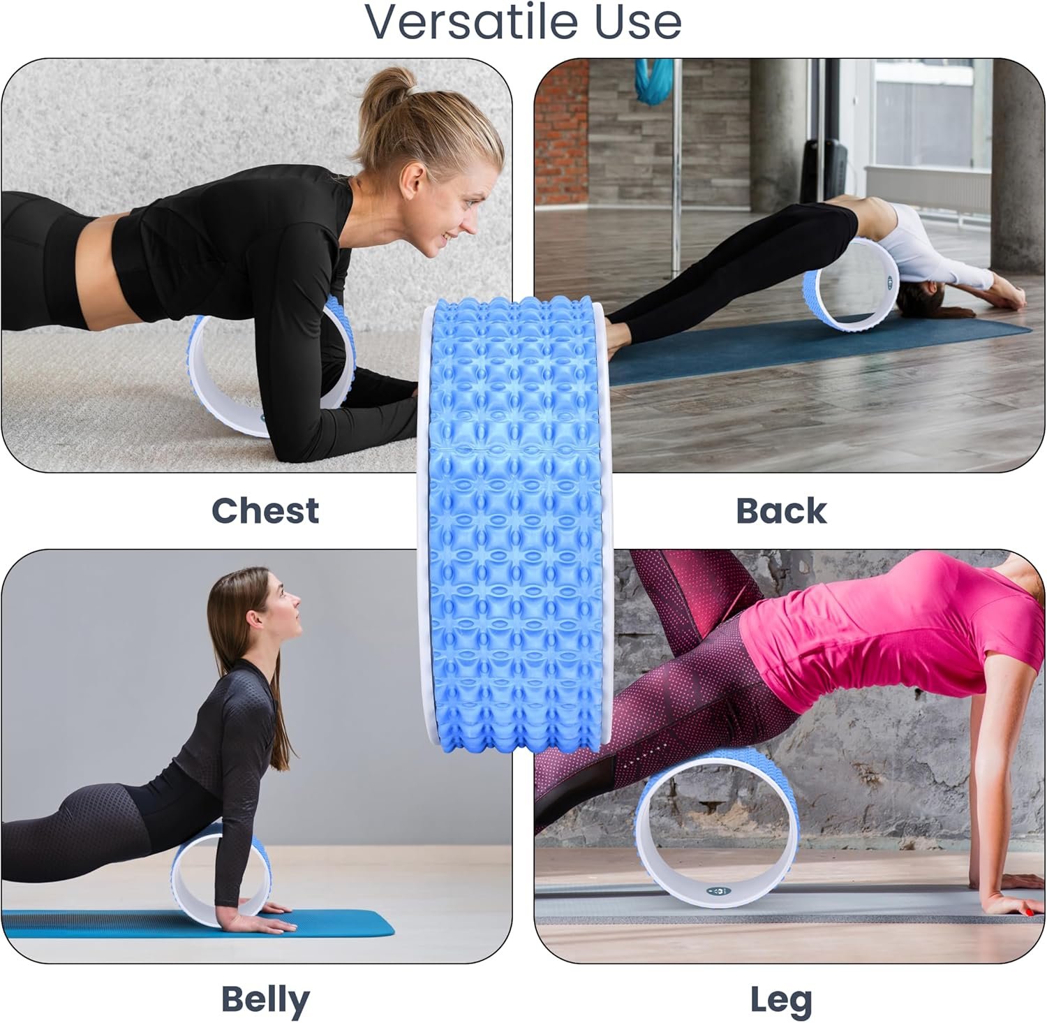 BLUE YOGA WHEEL FOR ENHANCED STRETCHING: The large yoga wheel wide is a must-have physical therapy tool that helps you roll, stretch, and adjust with precision, offering relief and improved muscle form. It’s a perfect yoga back roller and back wheel for pain relief