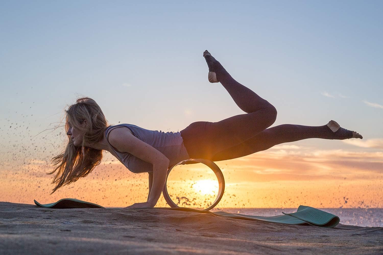 The yoga wheel will also help you improve your flexibility, core, and body strength.