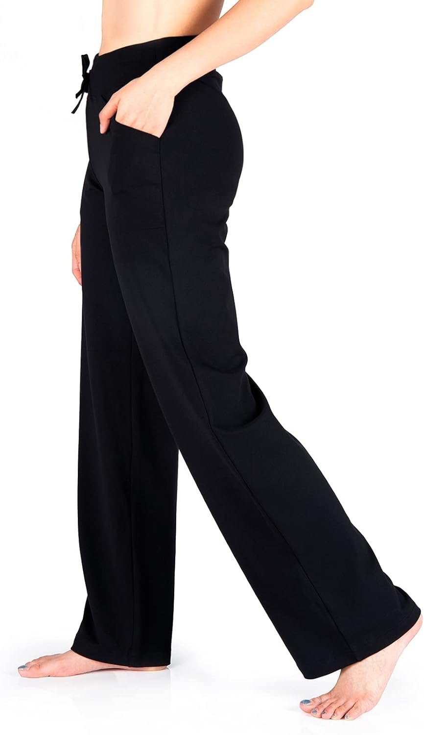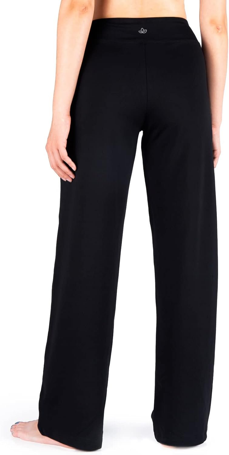 Customers find these pants comfortable and flattering. They appreciate the relaxed leg style and softer polyester fabric. The pants are versatile for both casual and formal occasions, with a nice drape in the thighs and legs. Customers value the quality material and weight of the pants, which is thicker than most yoga pants.