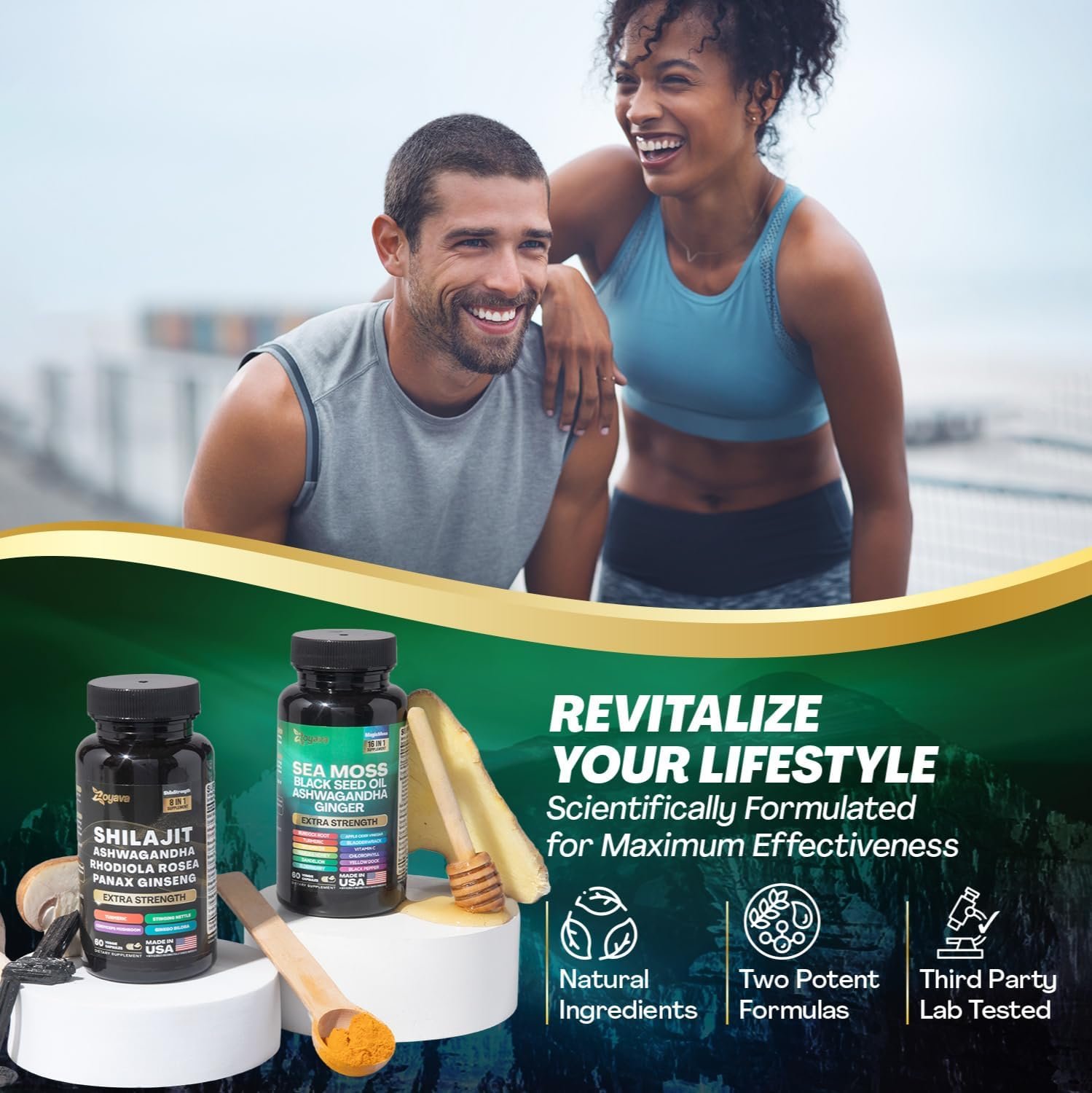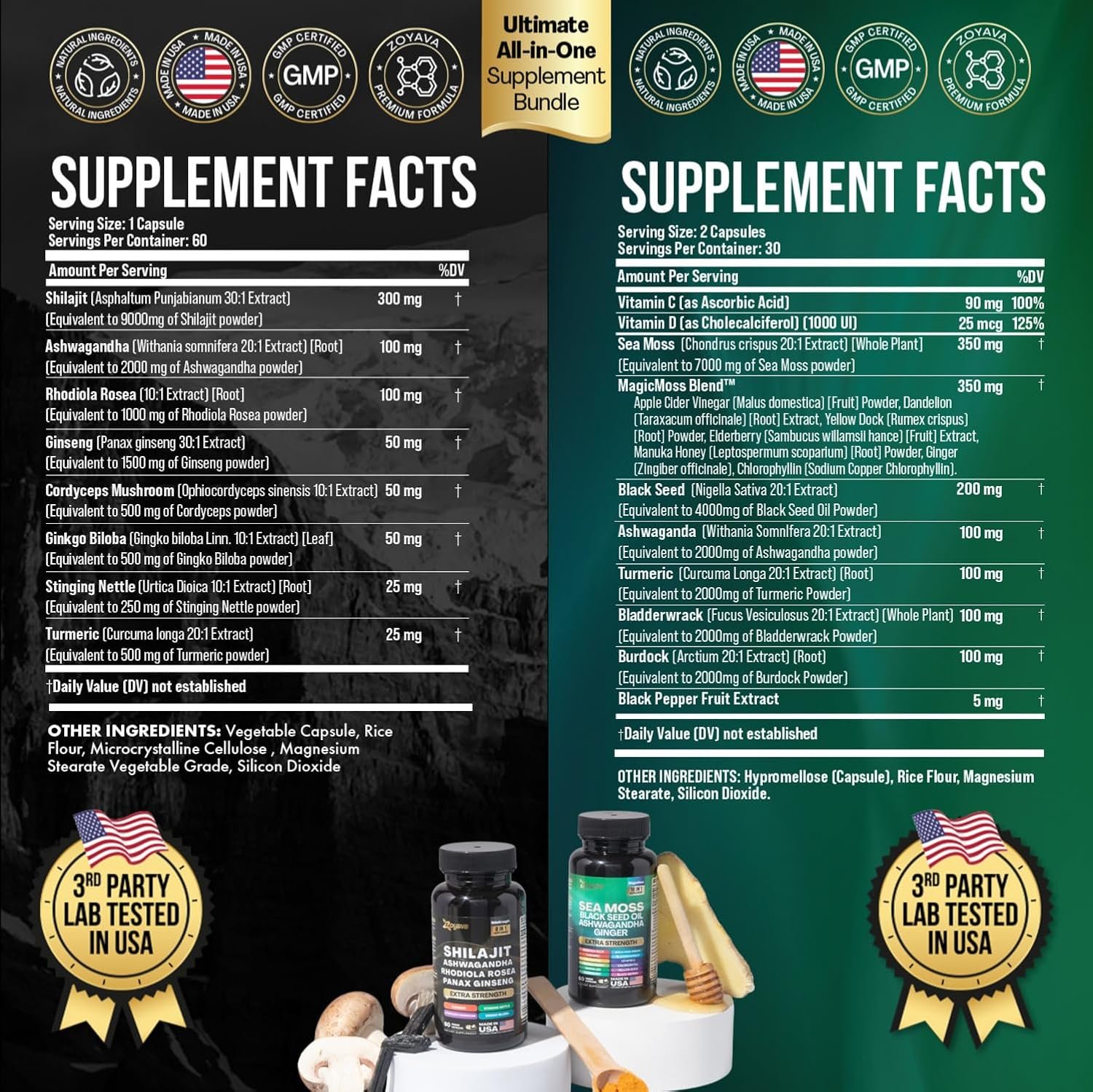 Trusted Third-Party Validation: Our Zoyava Sea Moss 16-in-1 and Shilajit 8-in-1 Supplements undergo rigorous 3rd party lab testings in USA, confirming its premium quality, free from contaminants, and delivering the pure essence of potent ingredients. Rest assured that our sea moss pills, shilajit capsules and ashwagandha supplements are meticulously formulated in a registered and certified facility right here in the USA. With our products, you won’t find any unnecessary preservatives or fillers.